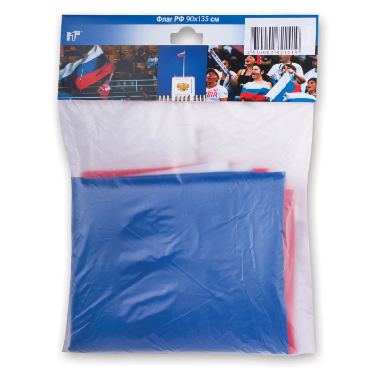 Флаг РФ 90x135см, пакет с европодвесом