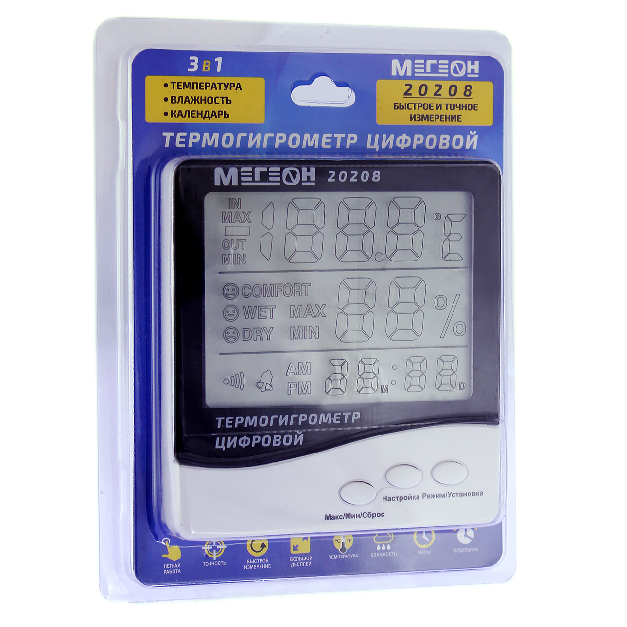 Термогигрометр настольный цифровой МЕГЕОН 20208