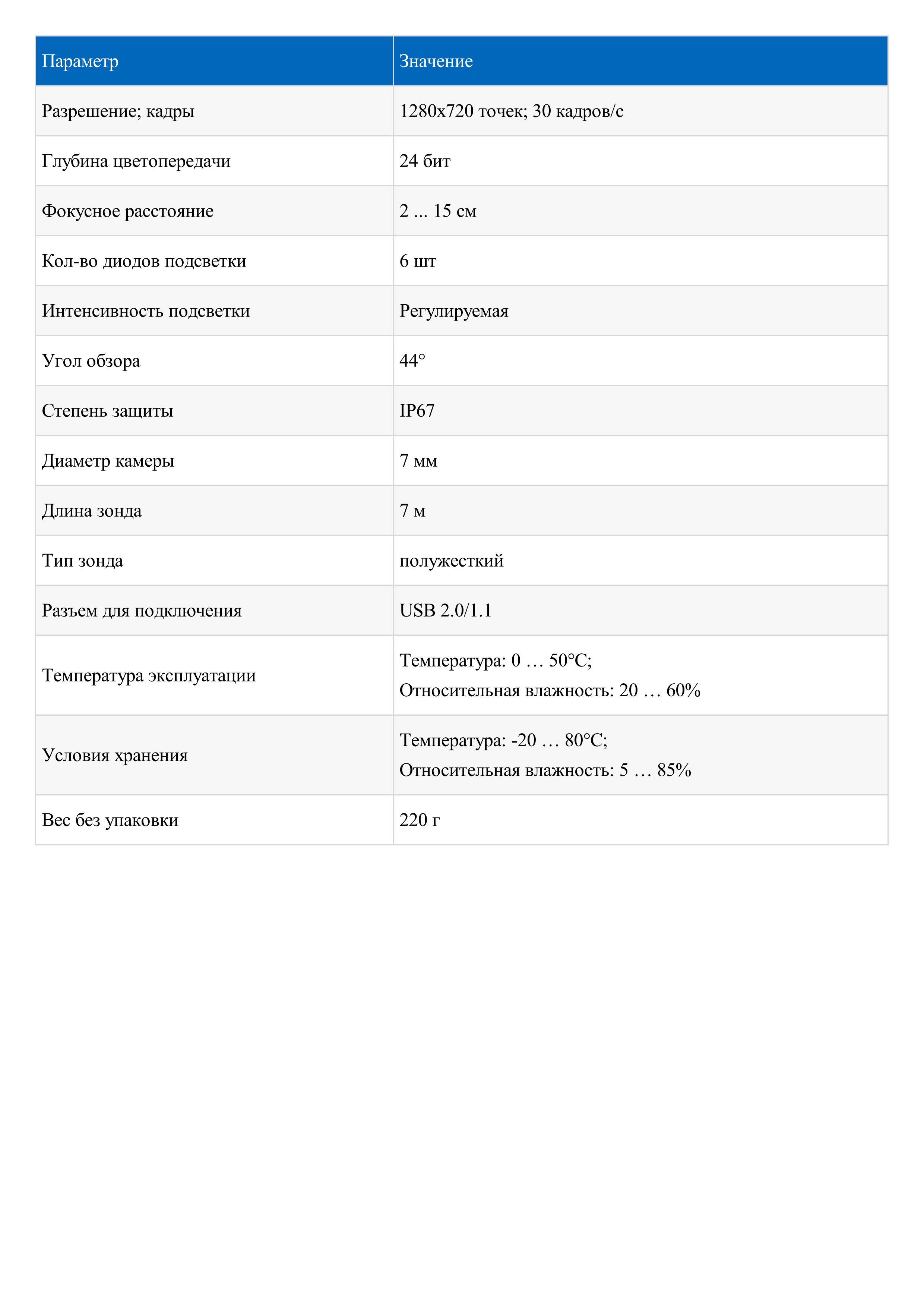 Видеоскоп полужесткий 7м МЕГЕОН 33072