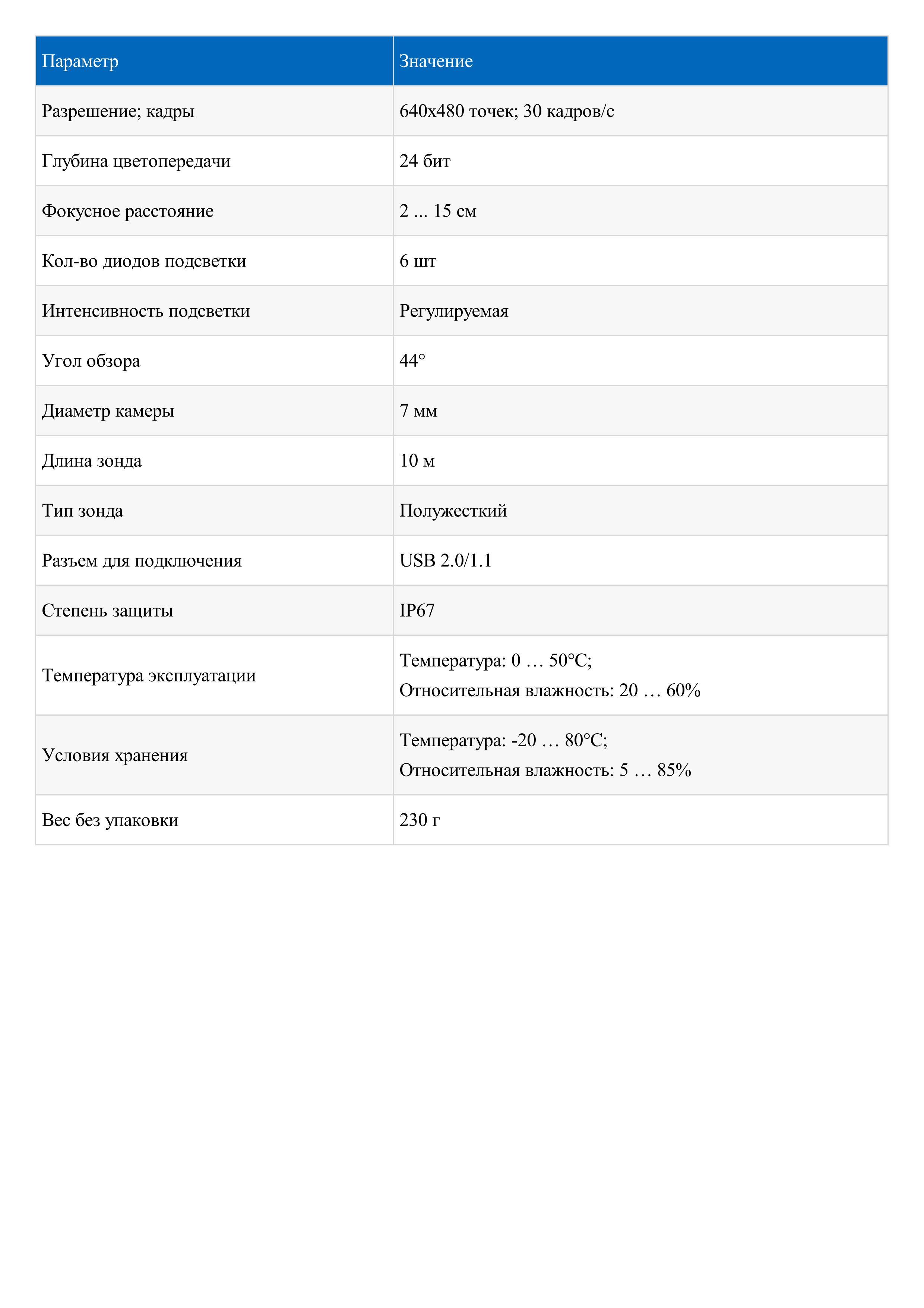 Видеоскоп-Эндоскоп USB 10м МЕГЕОН 33101