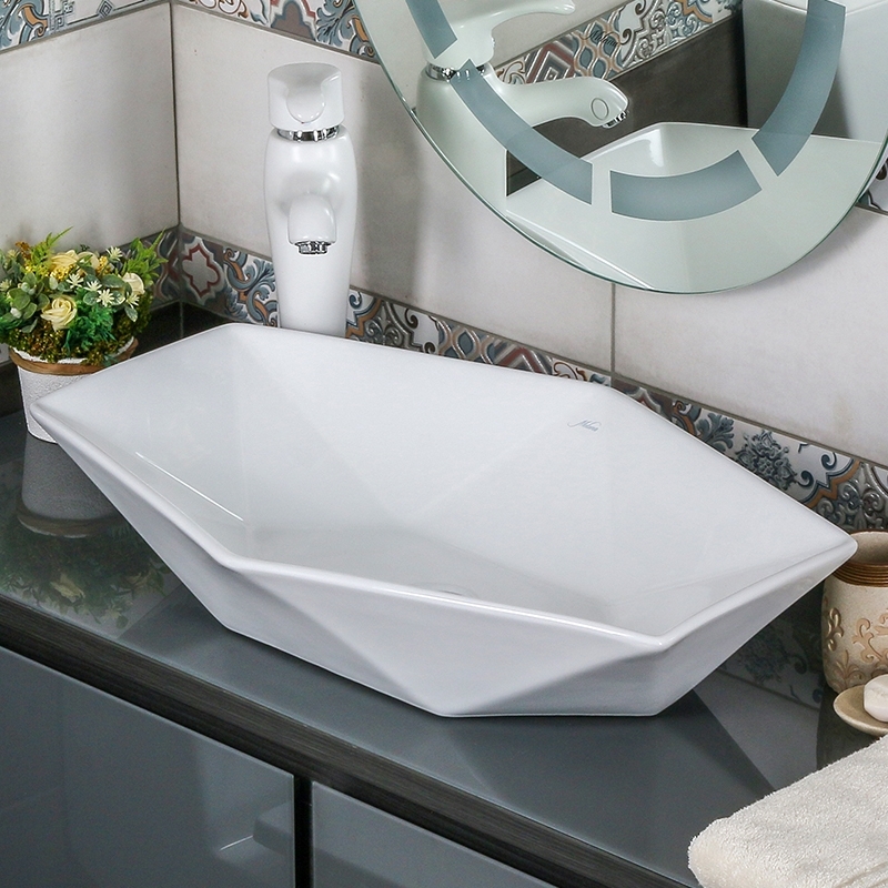 Раковина накладная в ванную с отверстием под смеситель с переливом MELANA MLN-78197