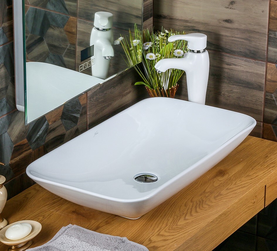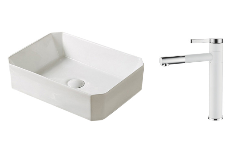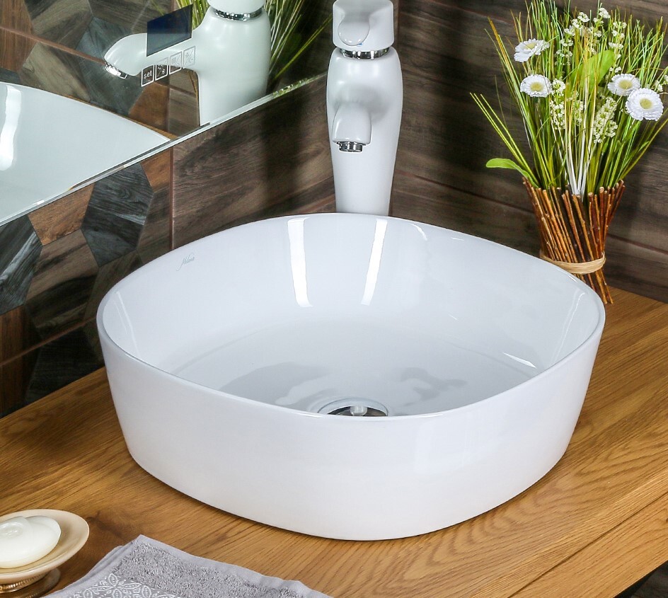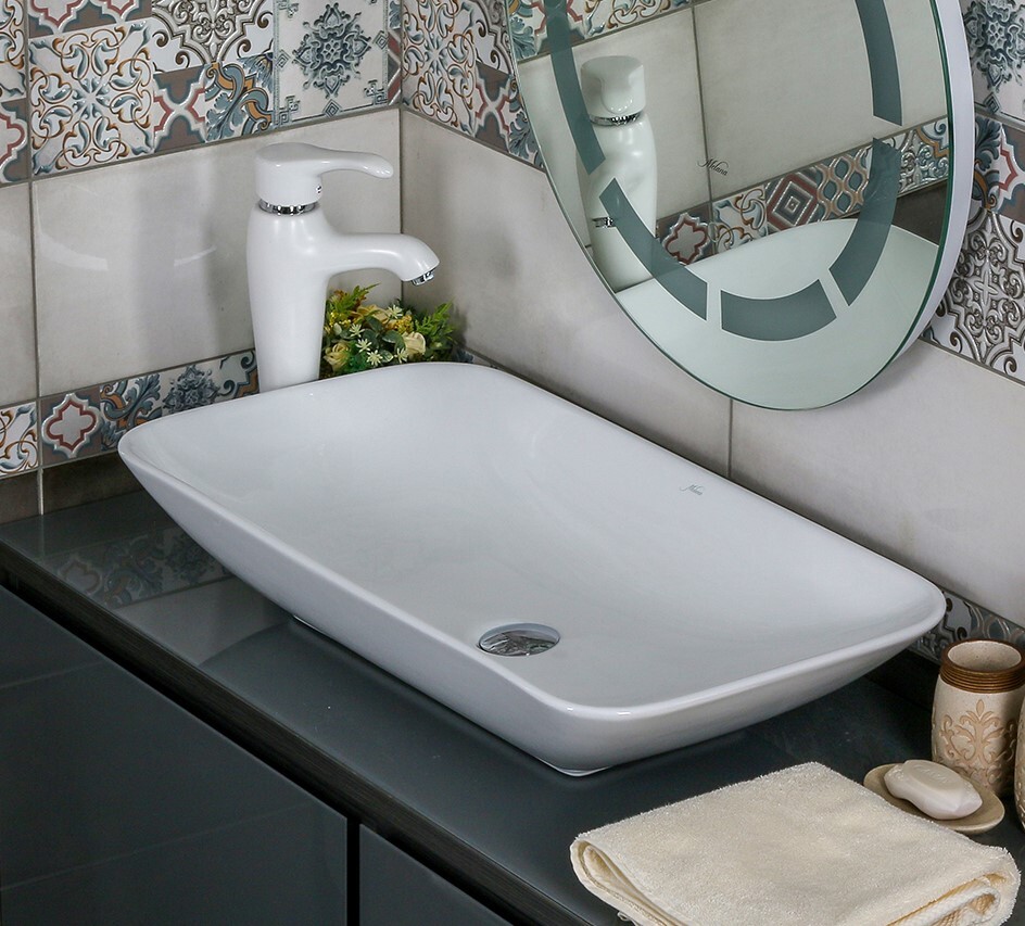 Готовое решение: накладная раковина MELANA 320318, смеситель с аэратором белый