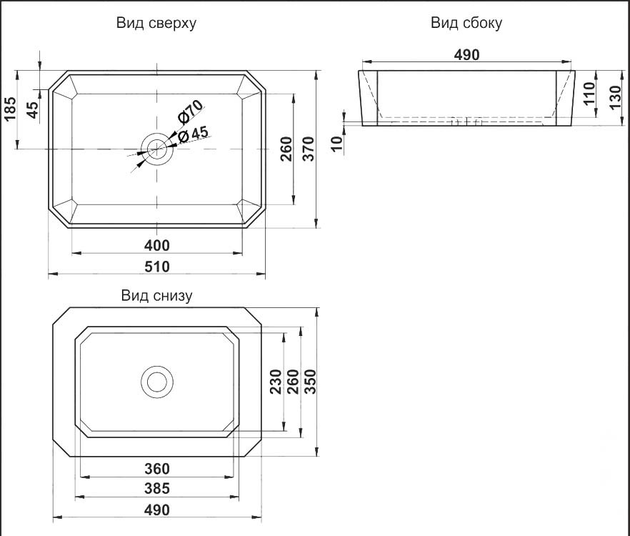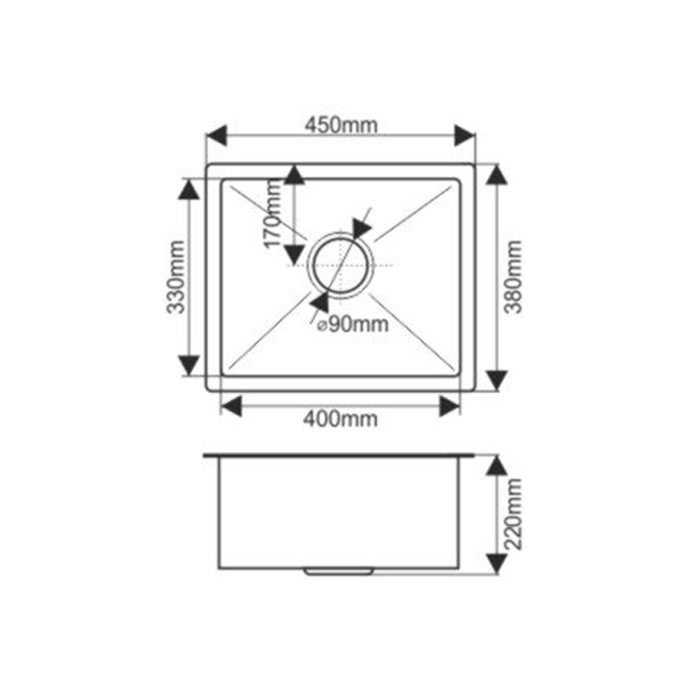 Мойка Melana 5050 0,4/160 накладная квадратная (074 t*20)