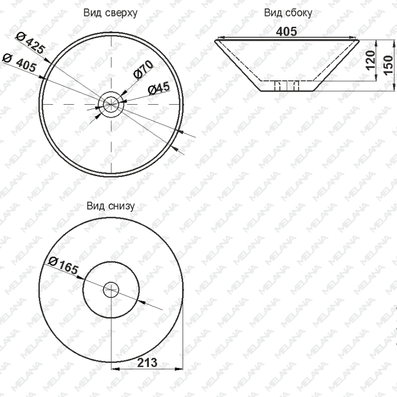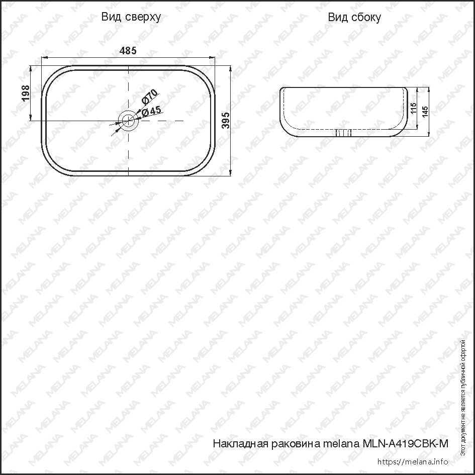 Накладная раковина MELANA ширина 69,5 см