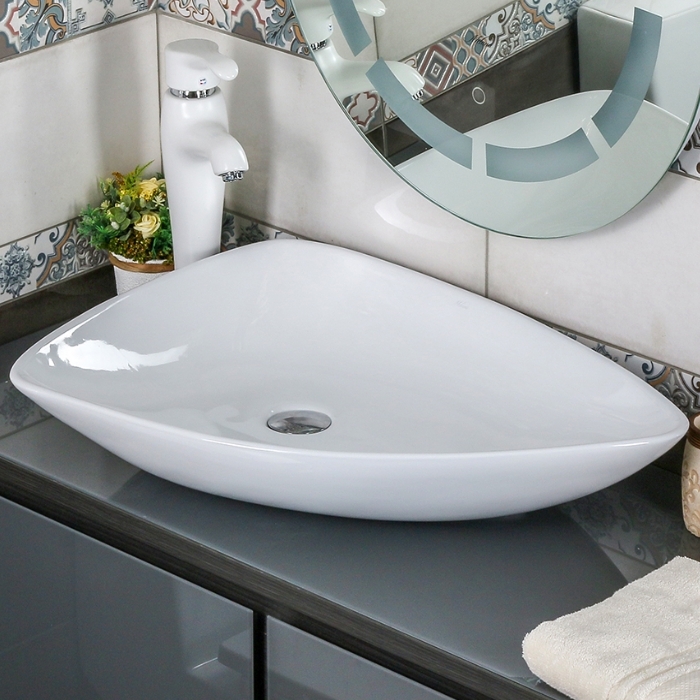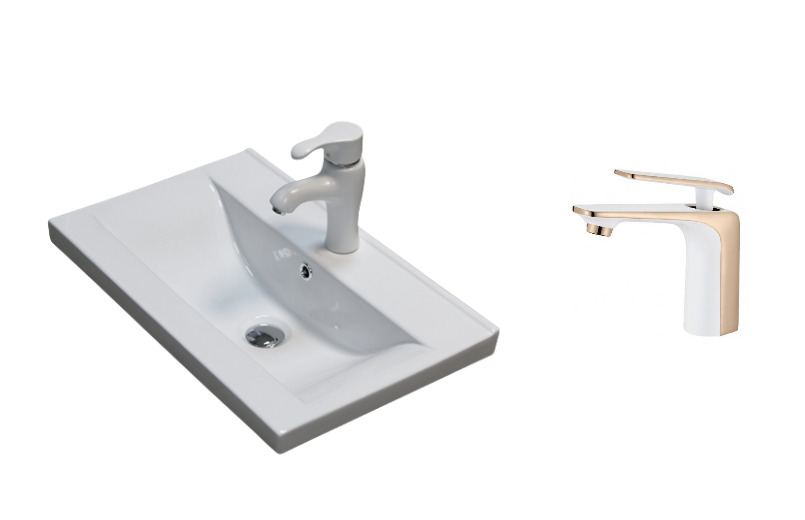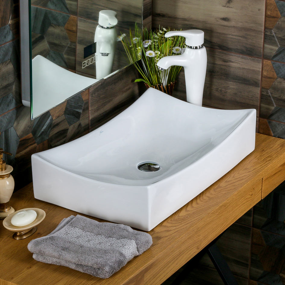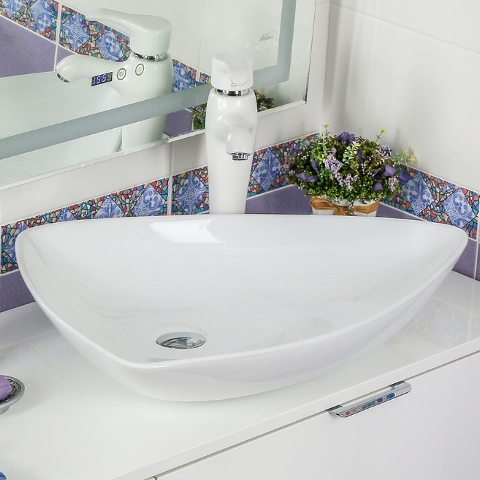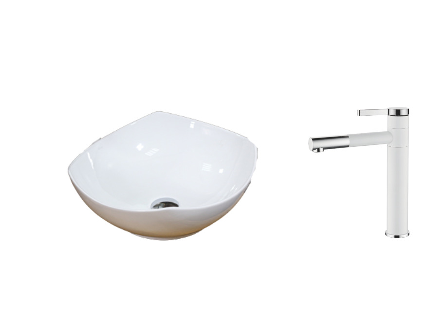 Готовое решение: накладная раковина MELANA ширина 41,5 см, смеситель с аэратором белый