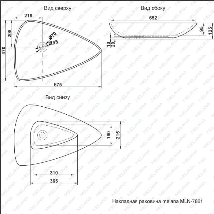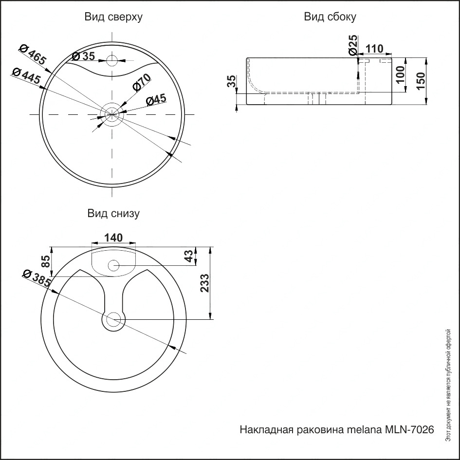 Раковина для ванной / Раковина накладная Melana 7026 с внутренним переливом