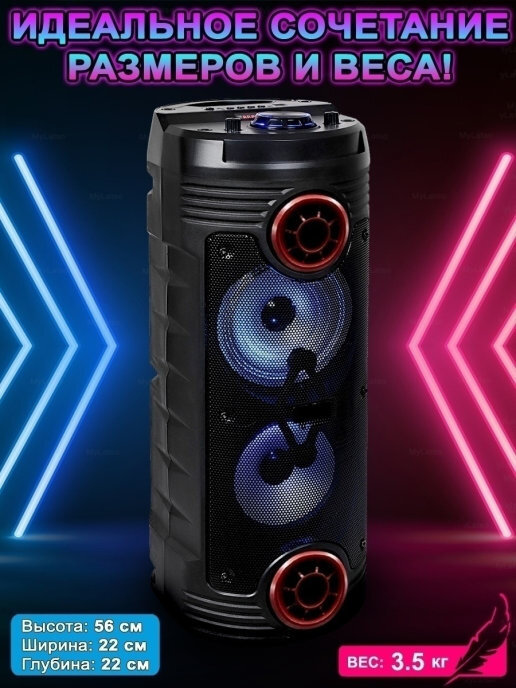 Портативная колонка Bluetooth с микрофоном для караоке FM MP3 AUX с подсветкой