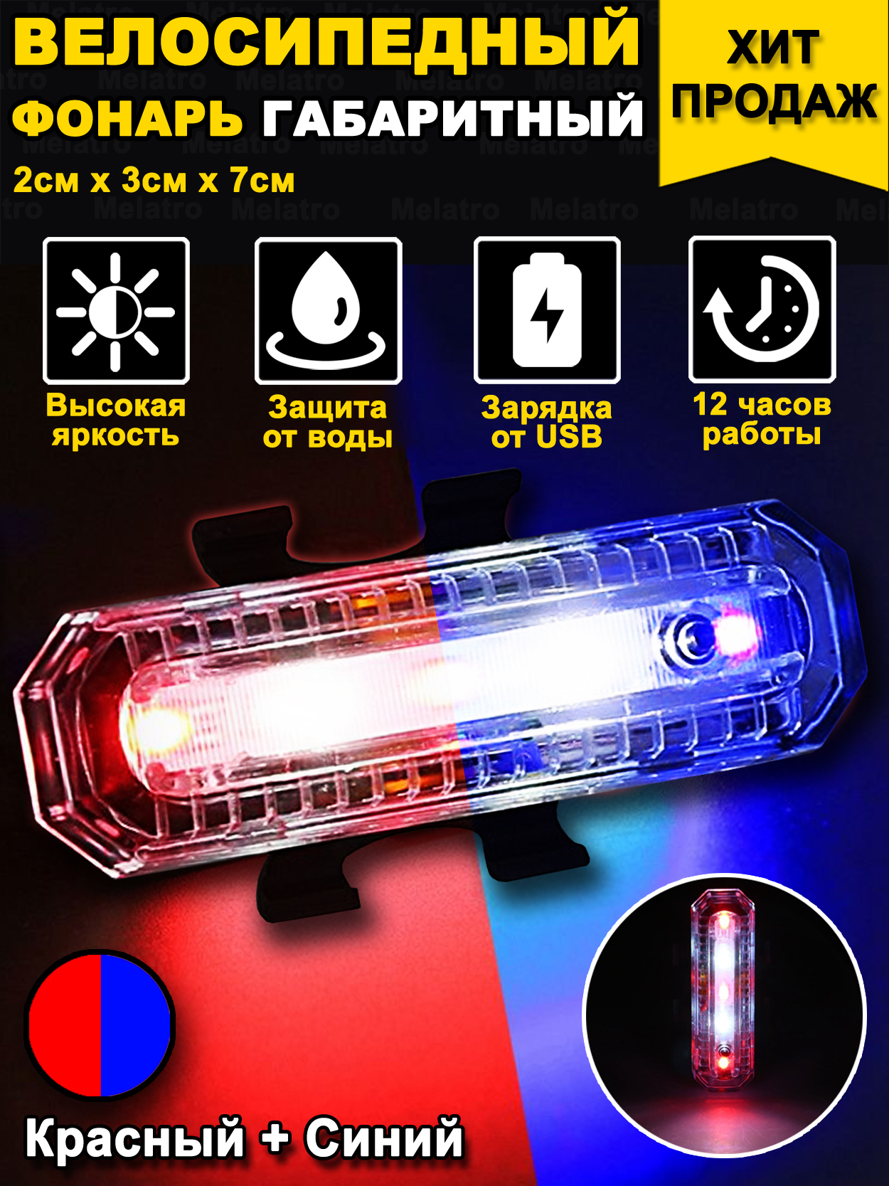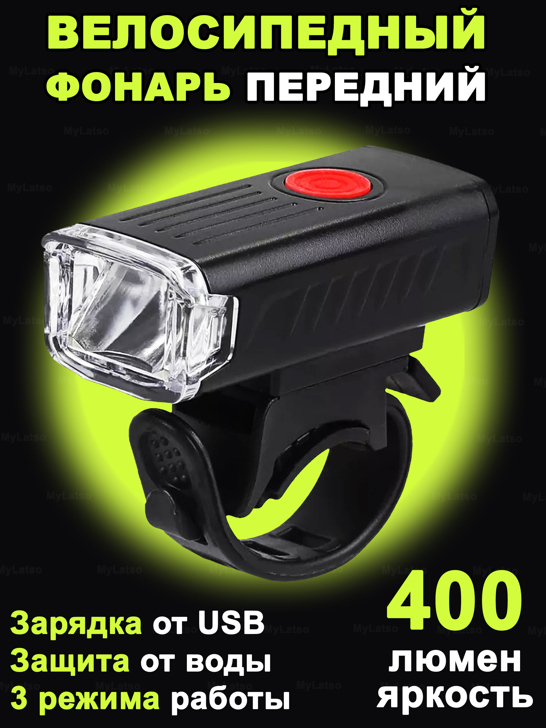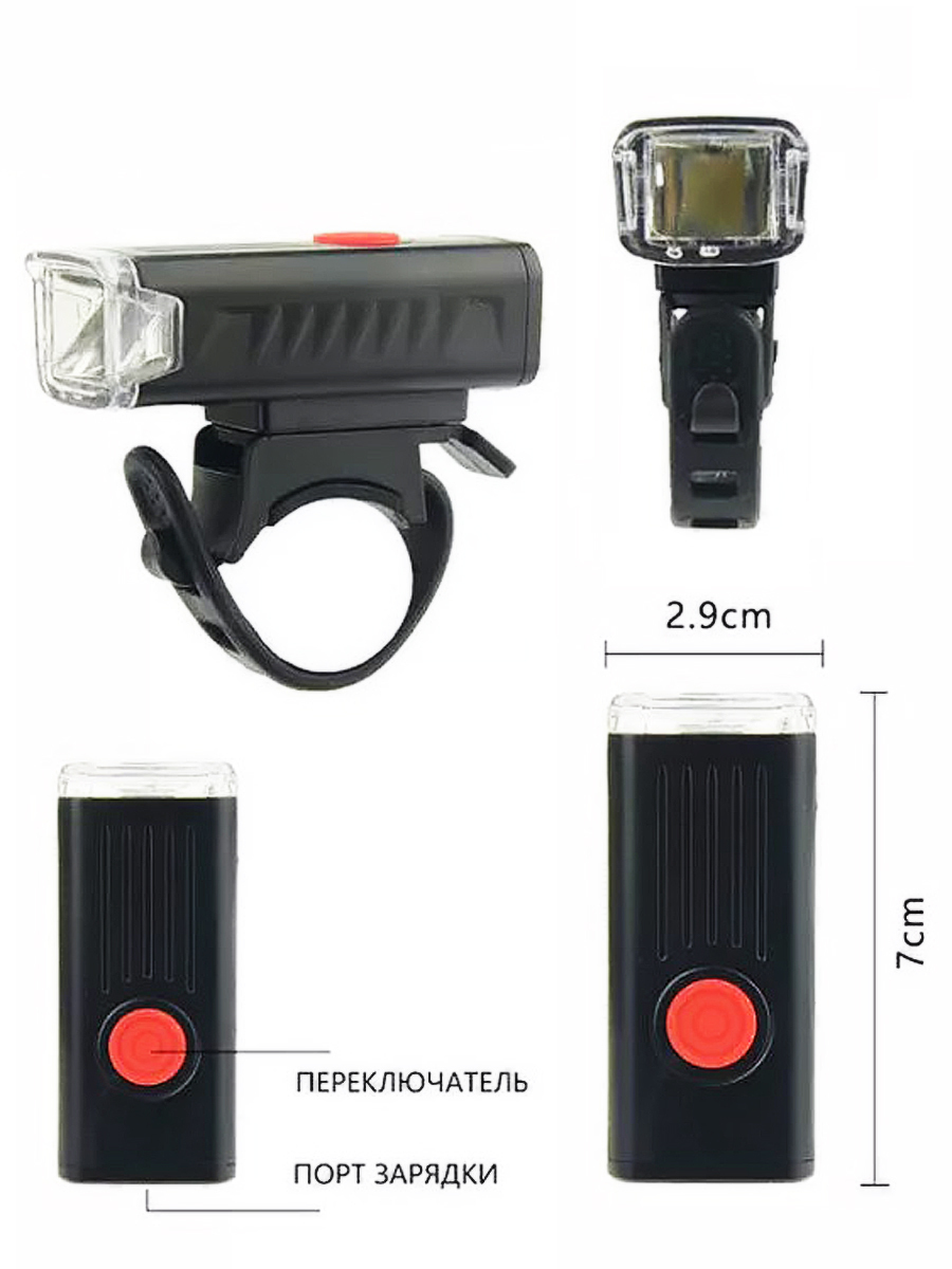 Светодиодный велосипедный фонарь со встроенным аккумулятором с влагозащитой