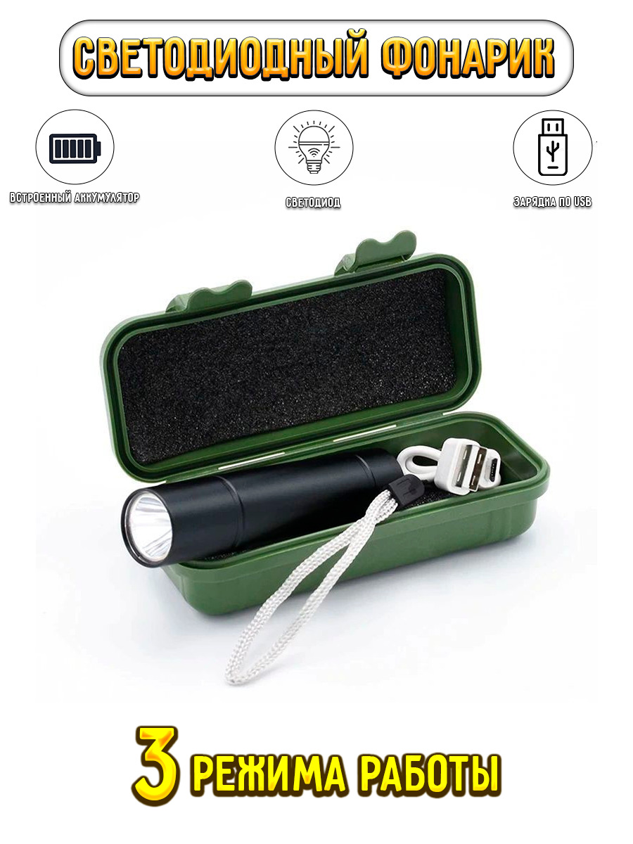 Светодиодный карманный фонарь с встроенным аккумулятором и зарядкой по USB