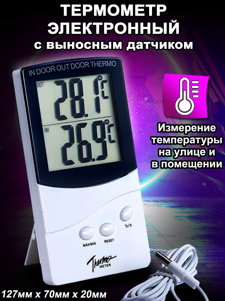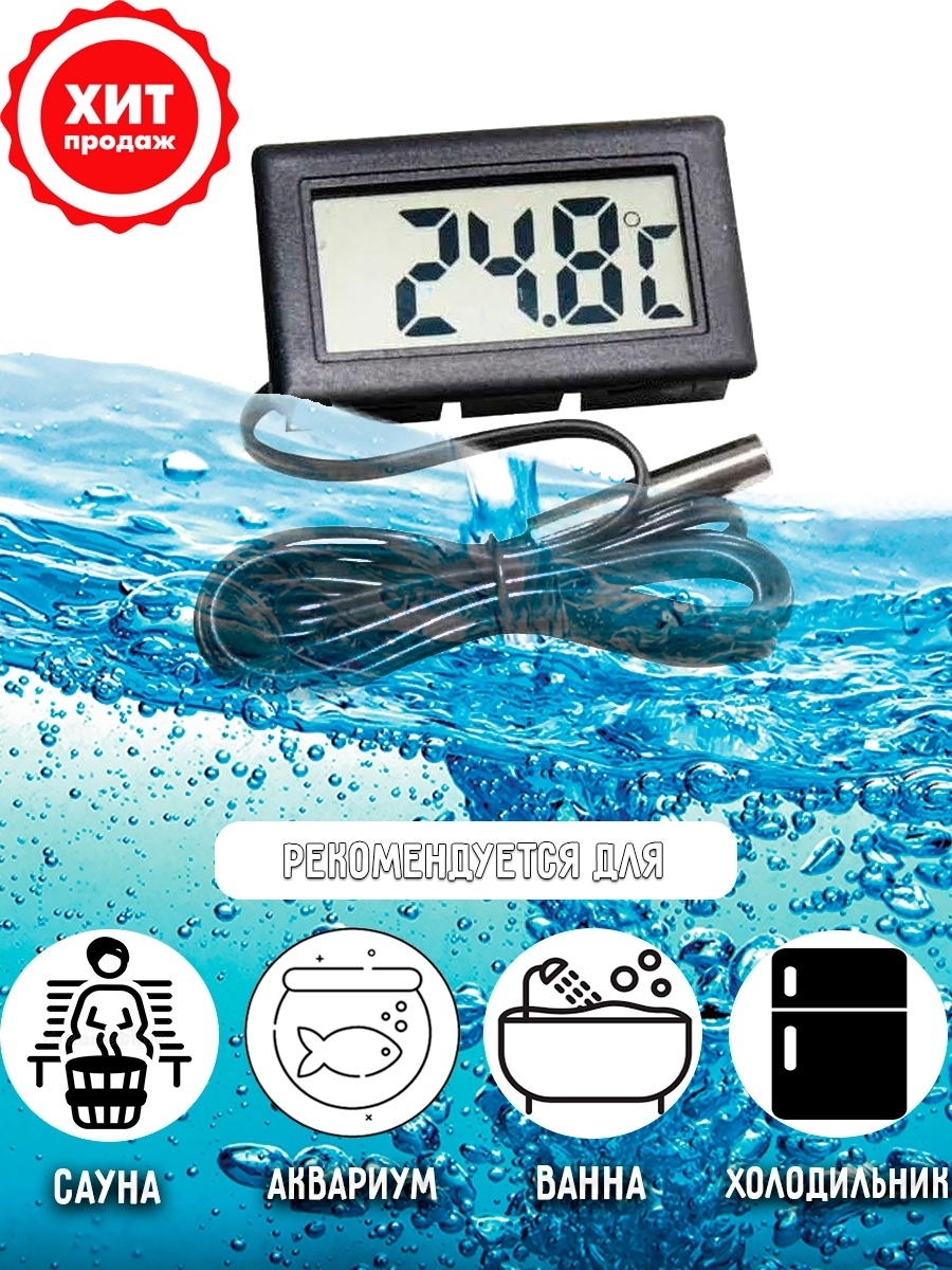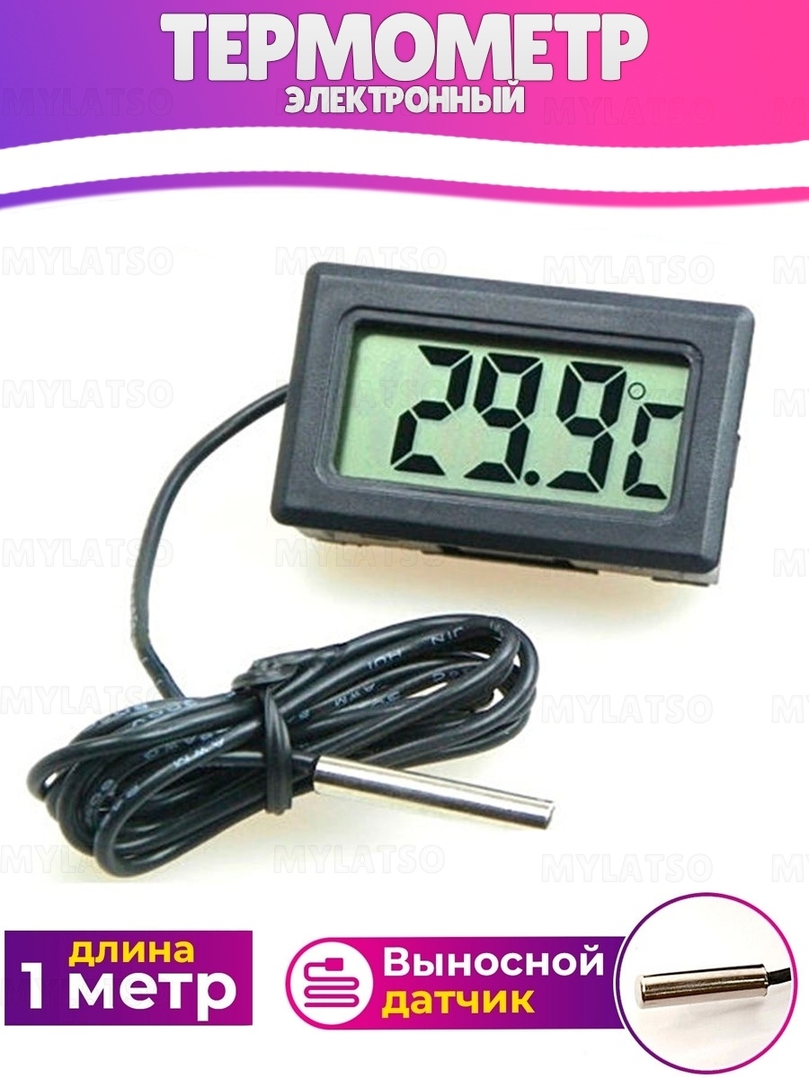 Термометр цифровой электронный с выносным датчиком для воды теплицы автомобиля сауны аквариума дома