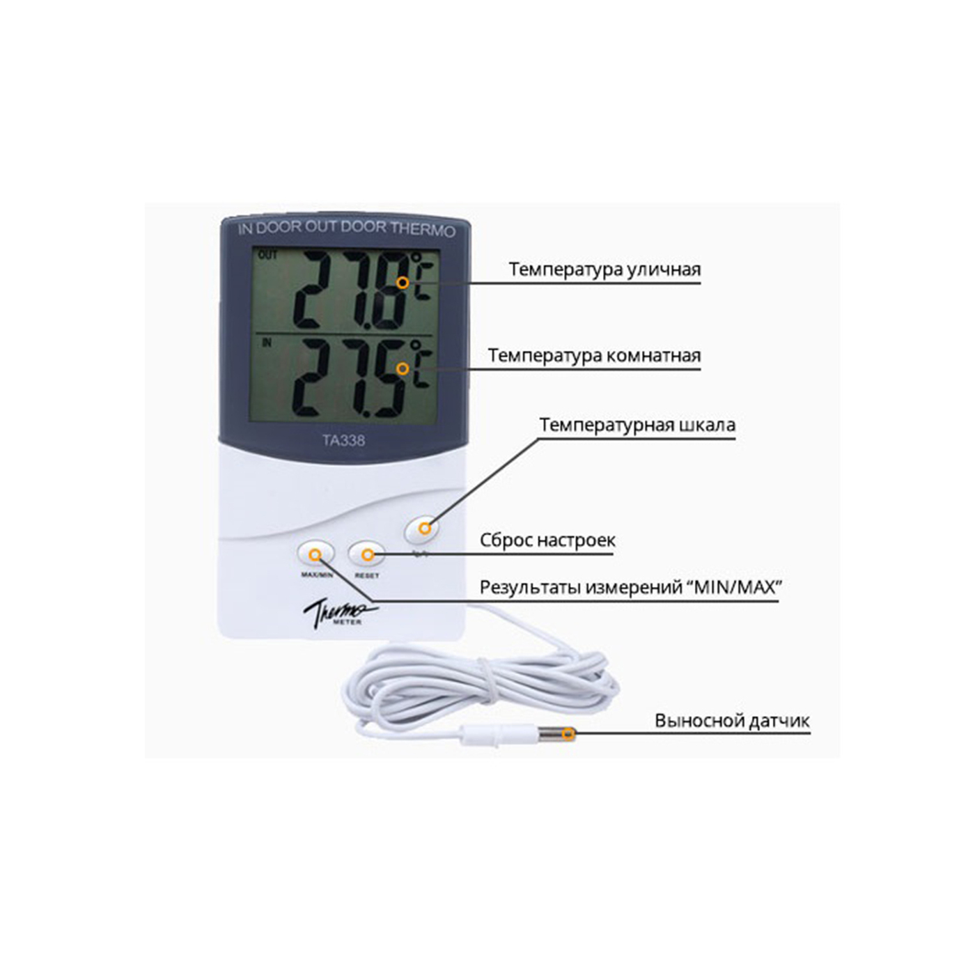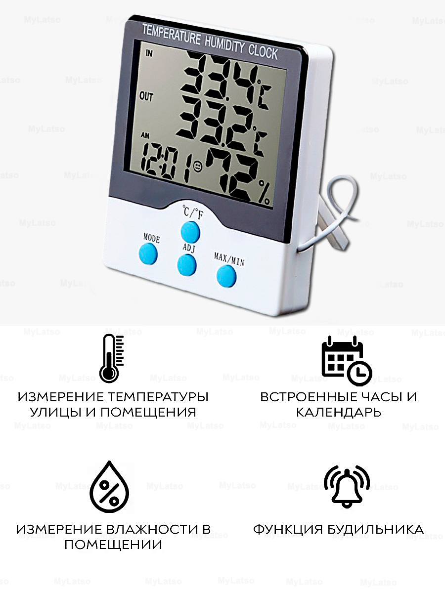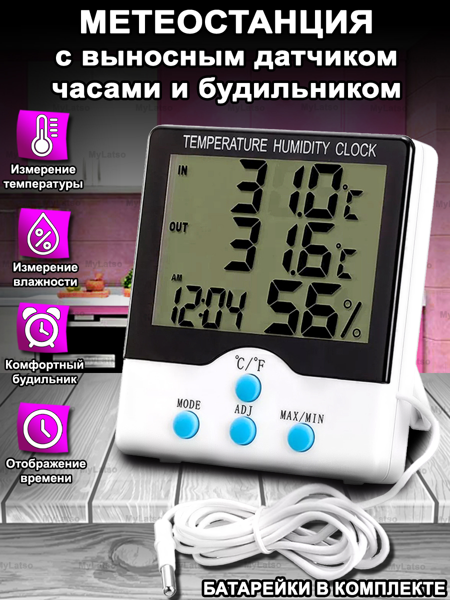Термометр цифровой электронный с выносным датчиком для воды теплицы автомобиля сауны аквариума дома