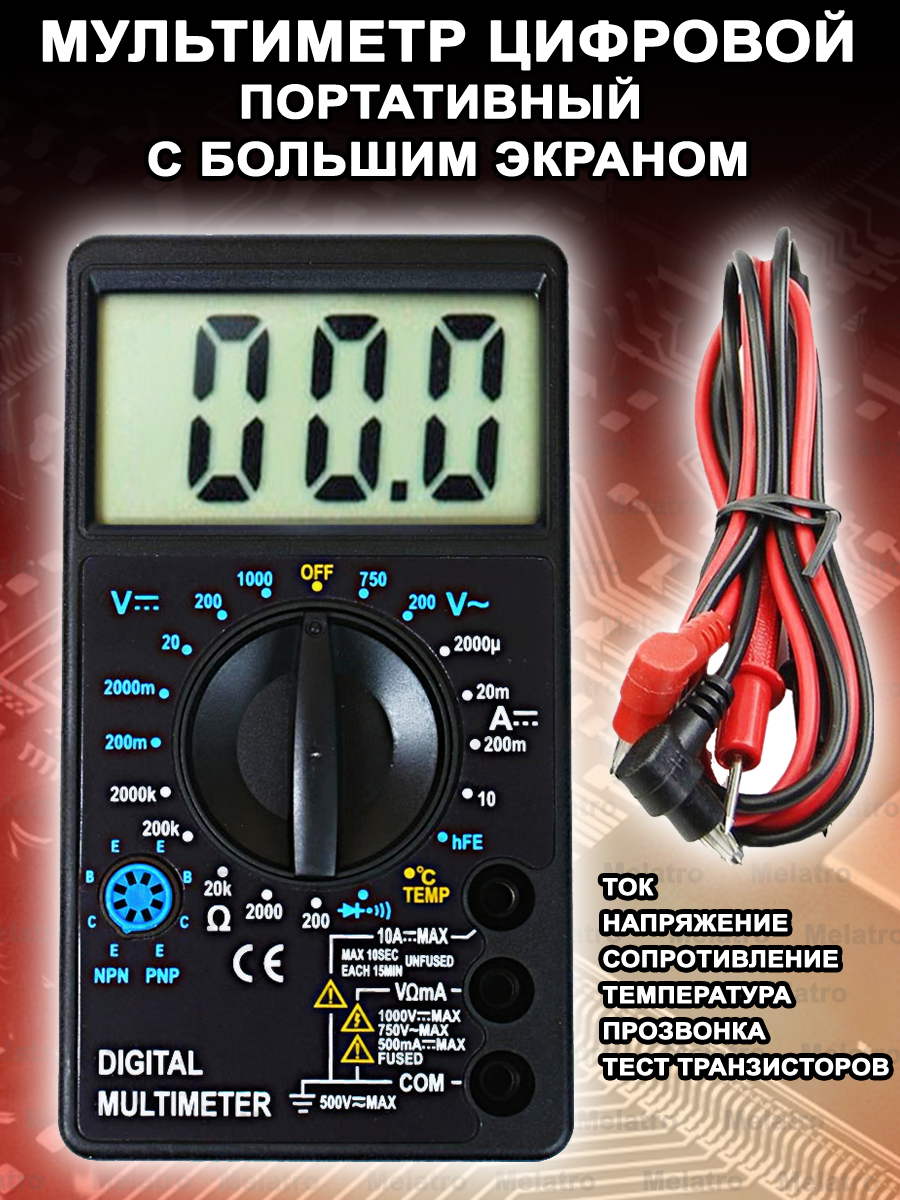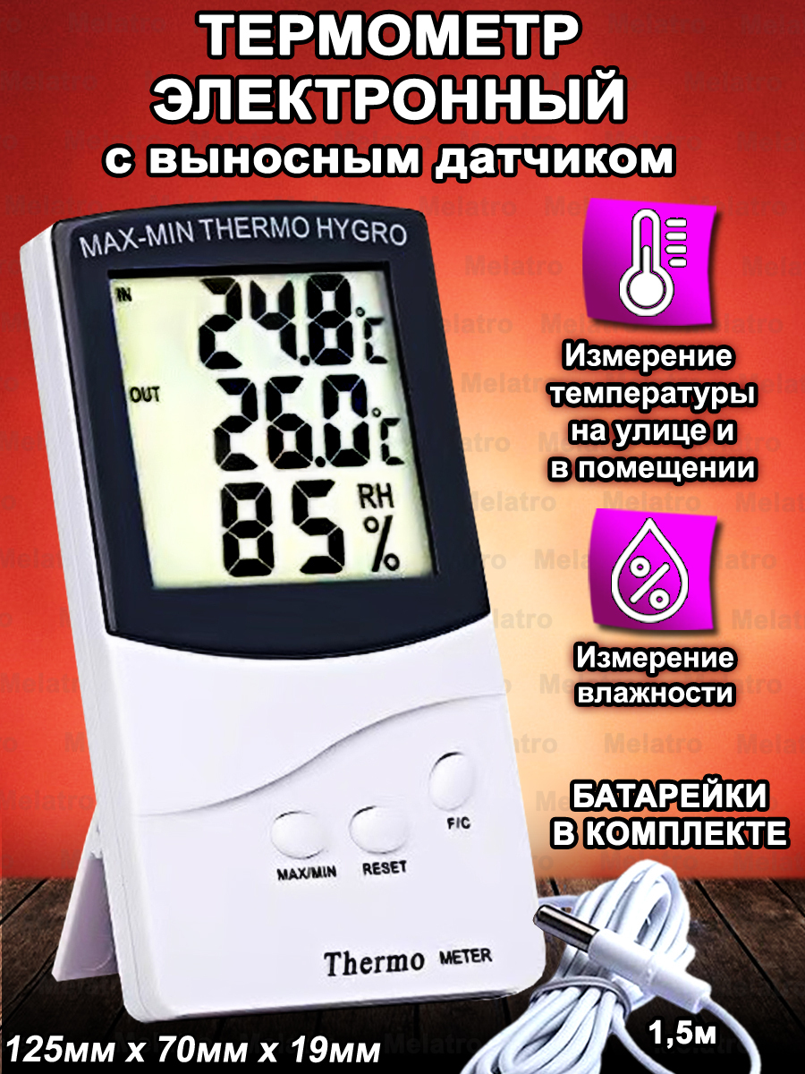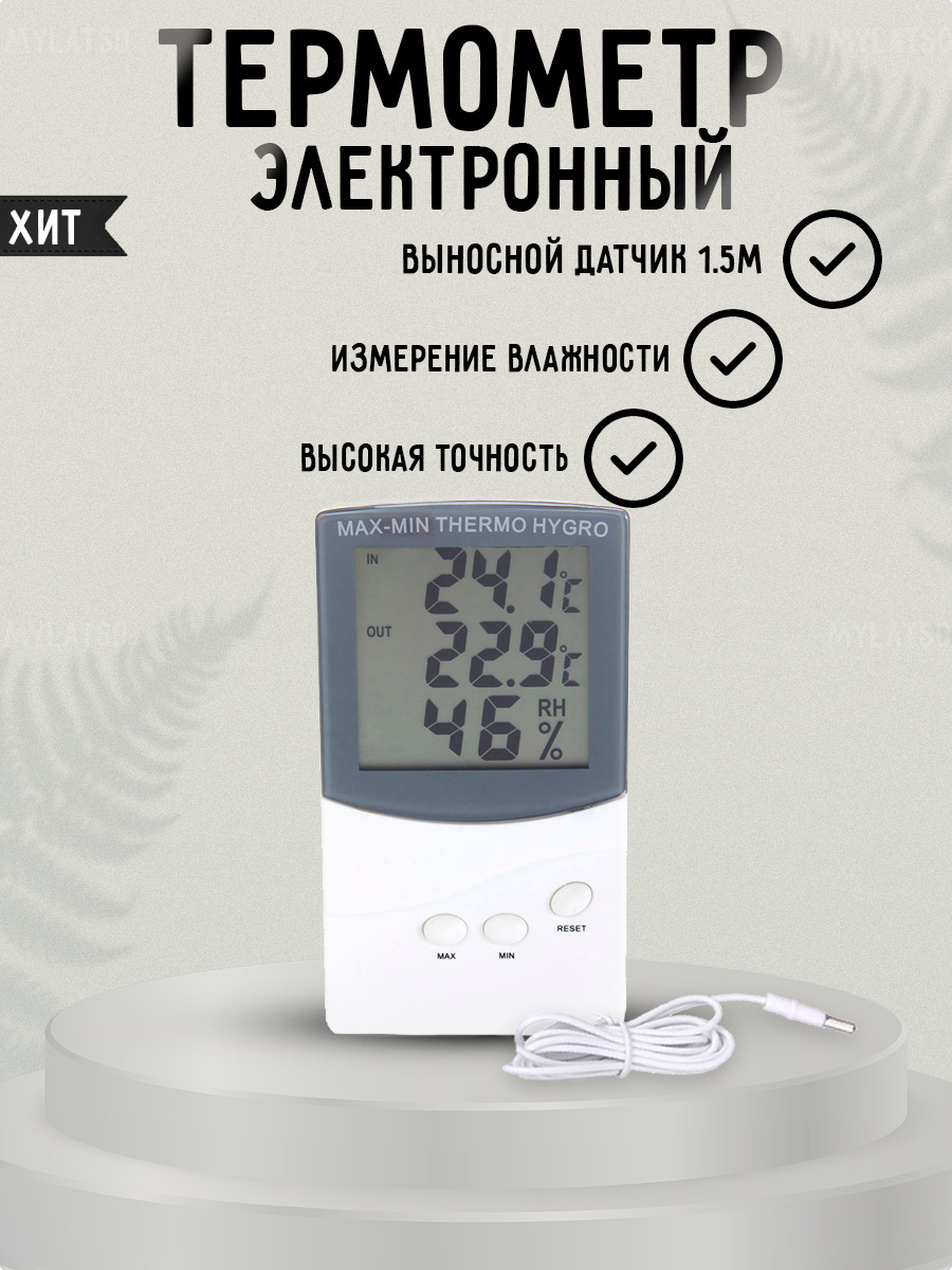 Цифровой термометр с LCD дисплеем и гигрометром, с выносным датчиком