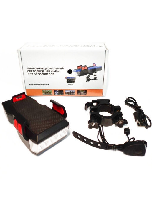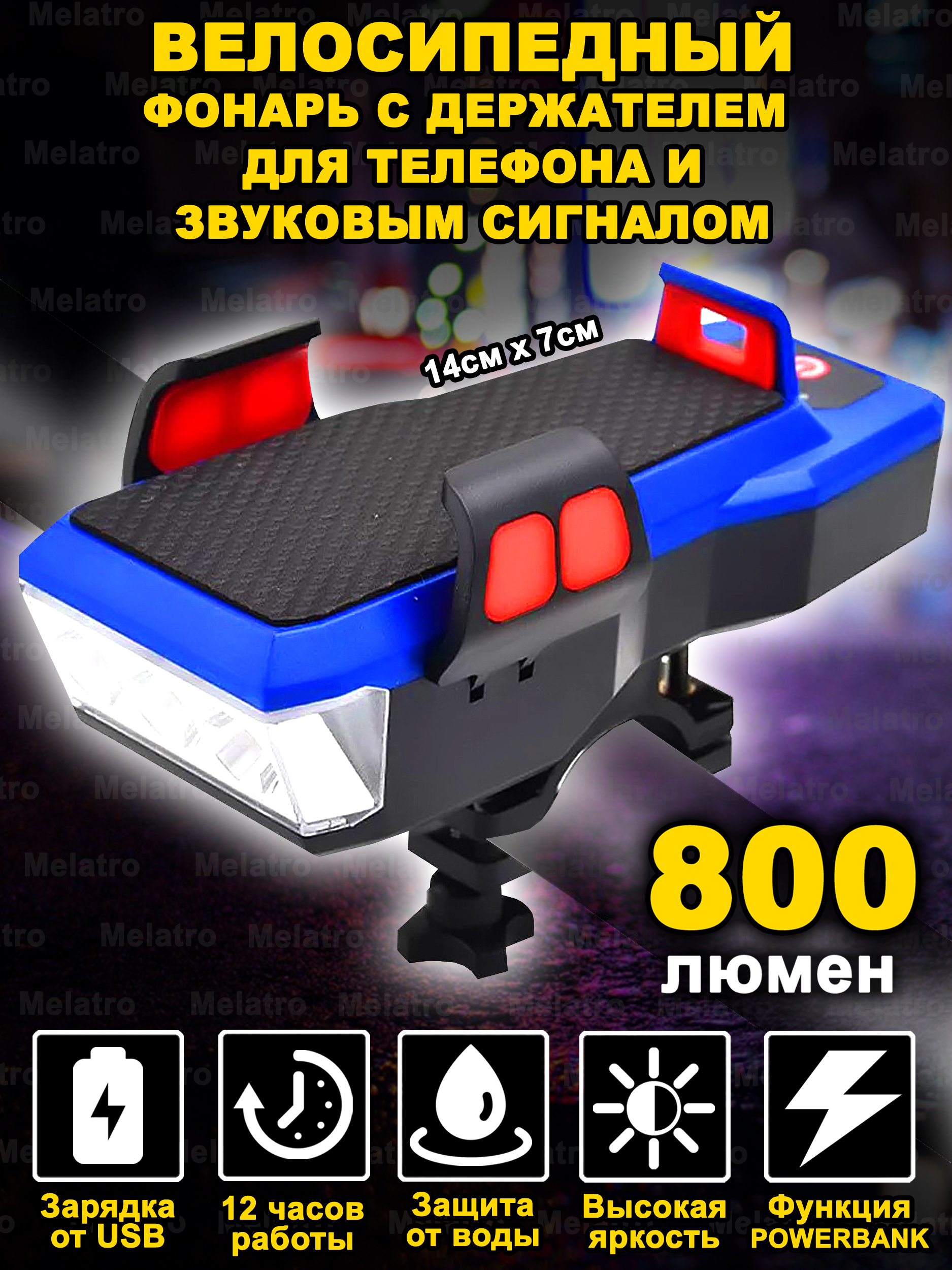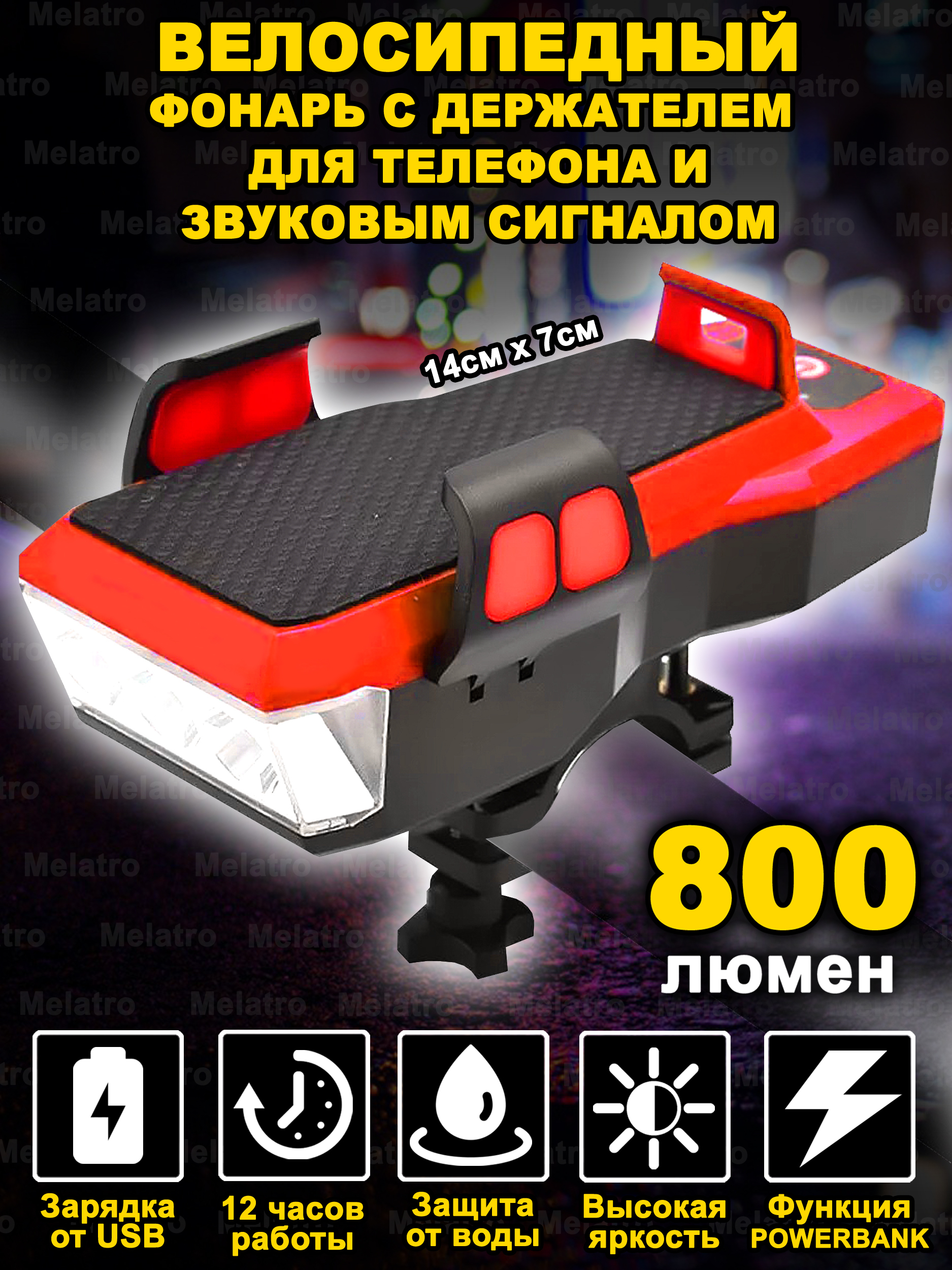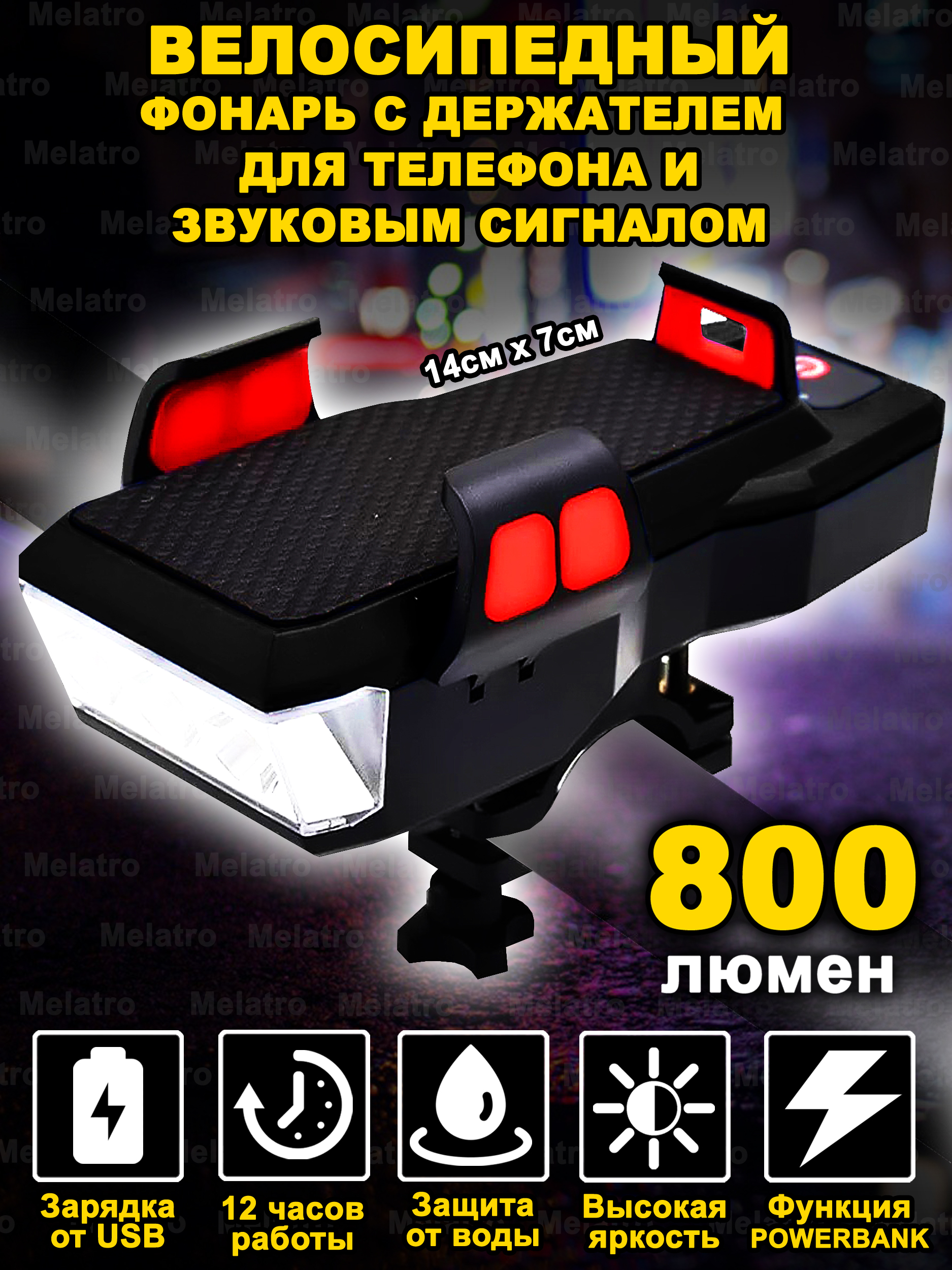 Велосипедный светодиодный фонарь с держателем для телефона и звуковым сигналом