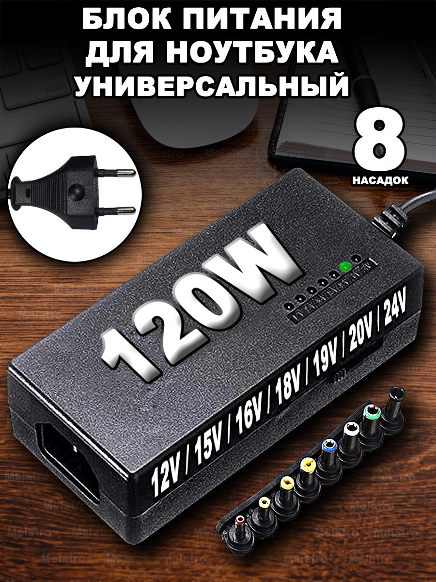 Блок питания универсальный для ноутбука от сети 120W 12 / 15/ 16 / 18 / 19 / 20 / 24 В