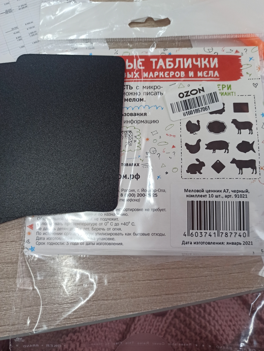 Грифельный ценник А7 (74 х 105 мм) для мела и маркера, прямоугольный, комплект 10 штук
