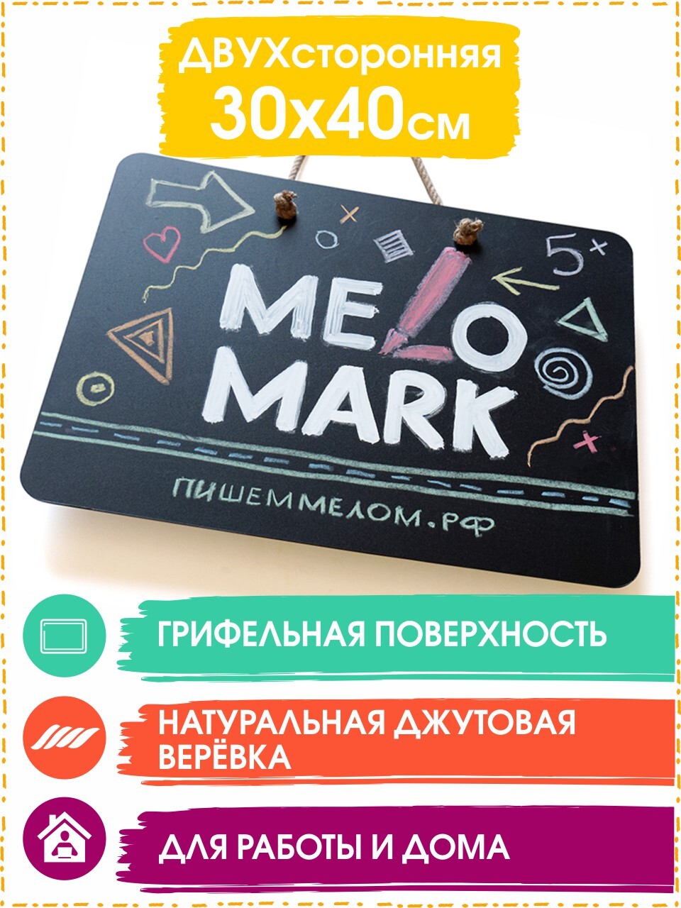 Меловая доска (планшет) для мела и маркера, 30х40 см