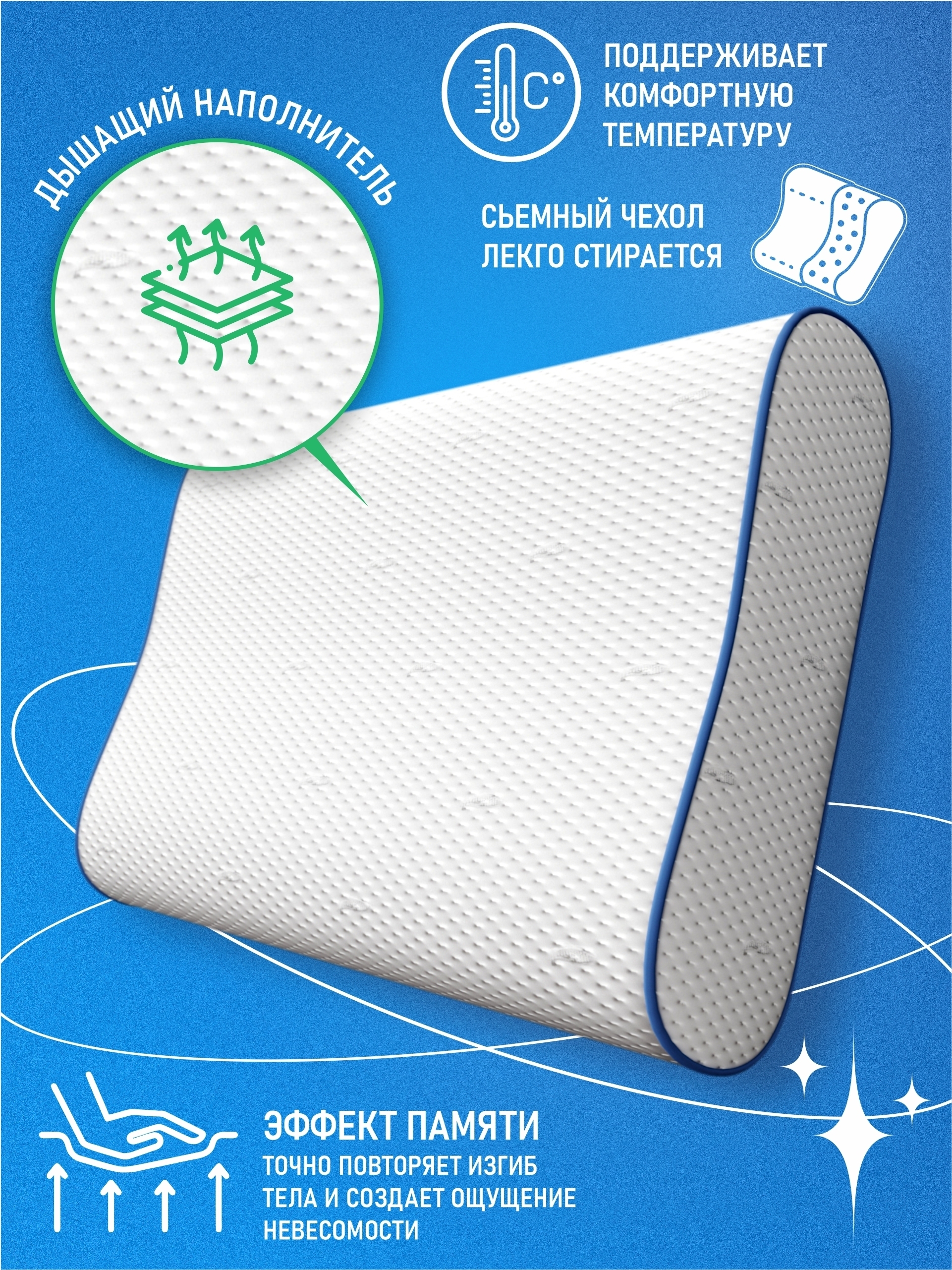 Поддерживающая подушка, Анатомическая подушка 53x38см, MemorySleep S Grand, высота 14 см