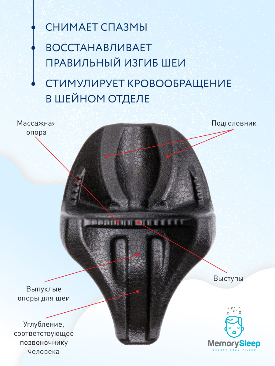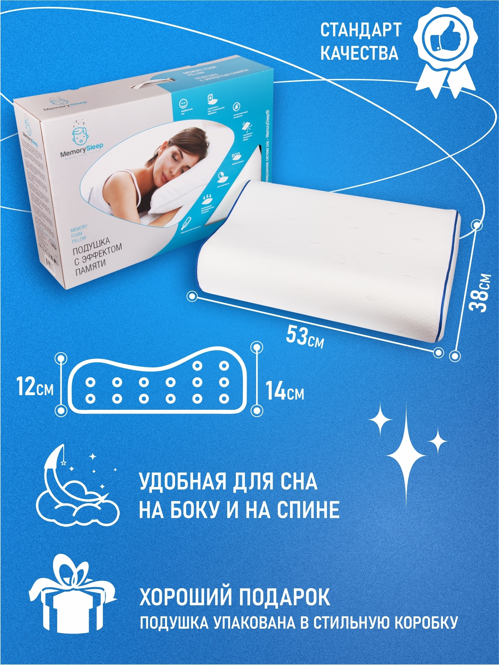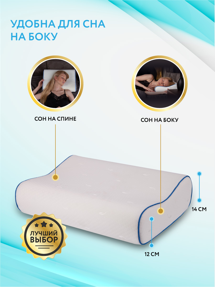 Анатомическая подушка, Ортопедическая подушка 38x53см, MemorySleep s grand, высота 14 см