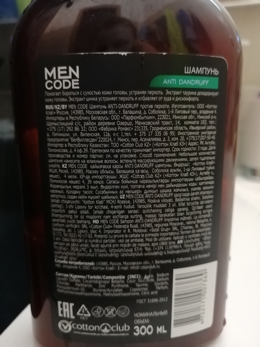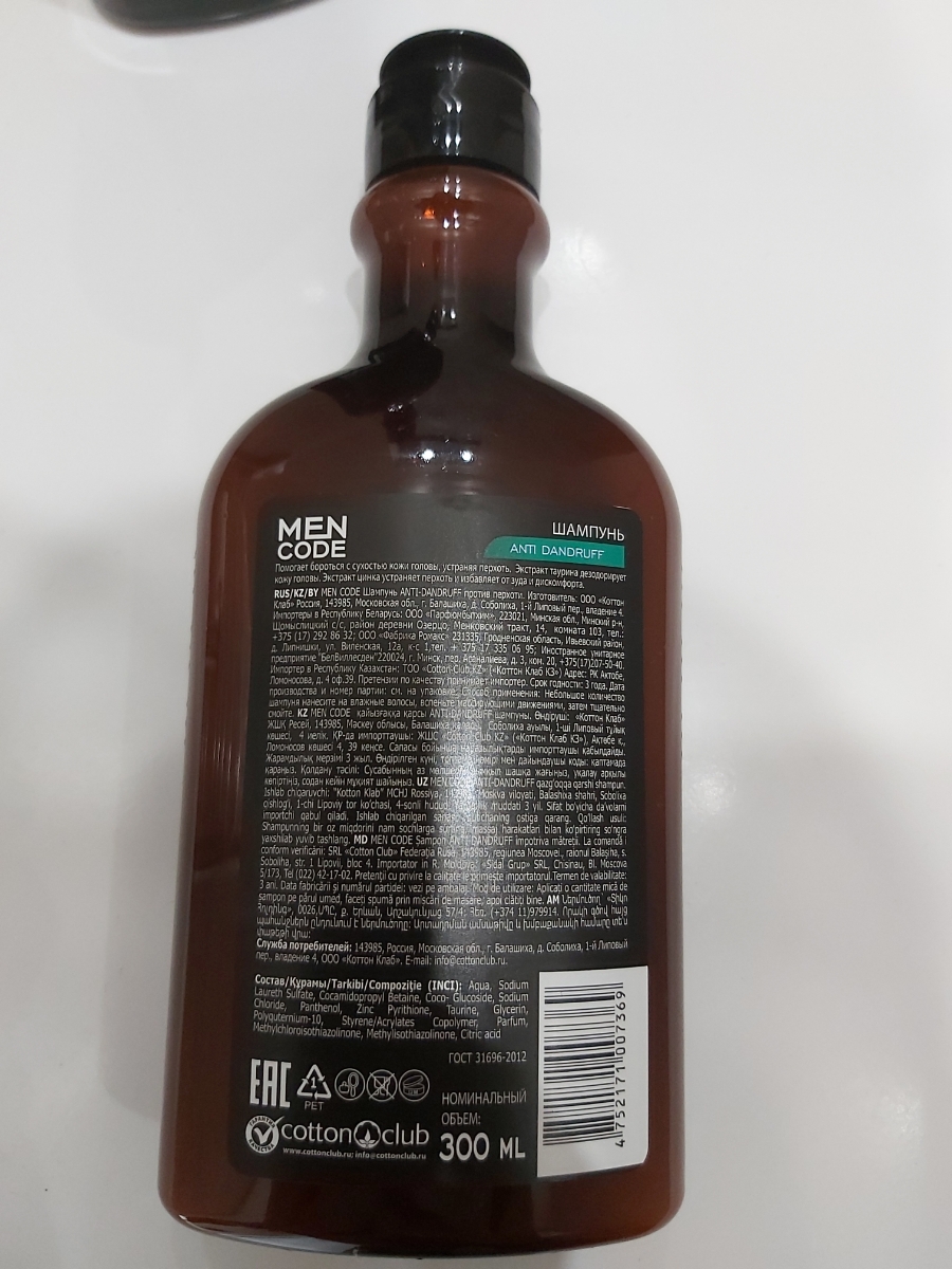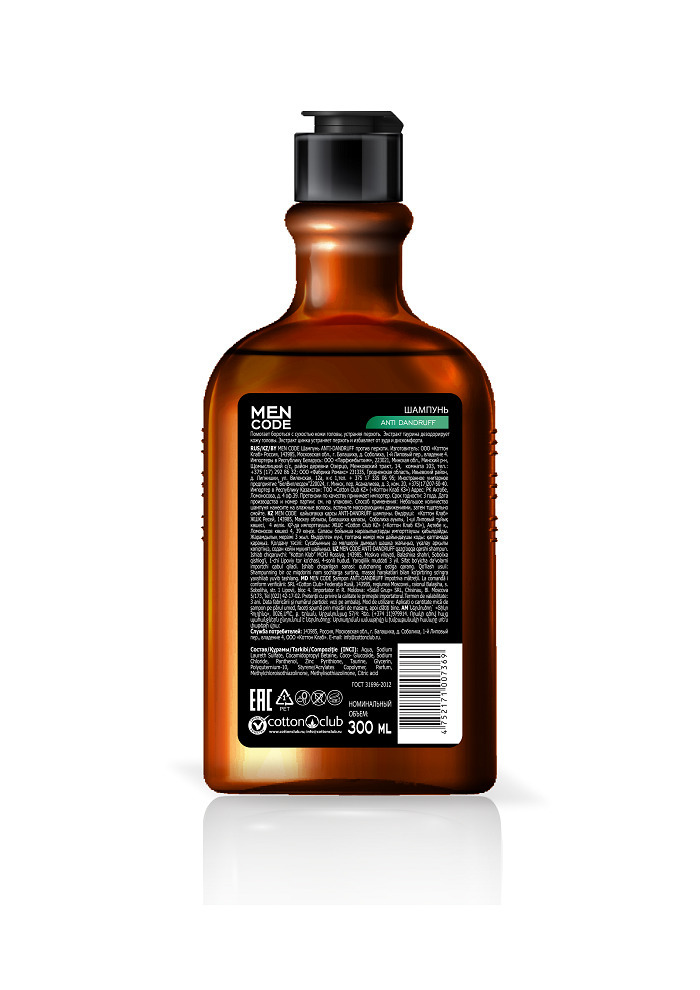 Шампунь MEN CODE ANTI-DANDRUFF против перхоти с экстрактом таурина и цинка, флакон/флиптоп, 300мл