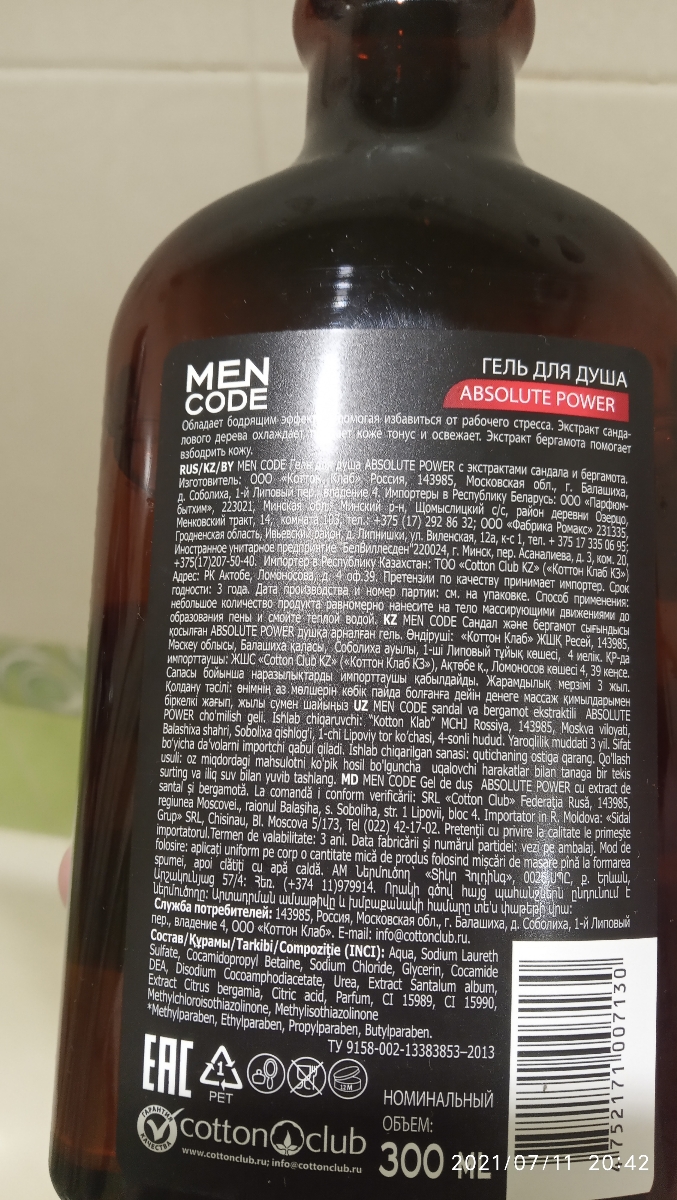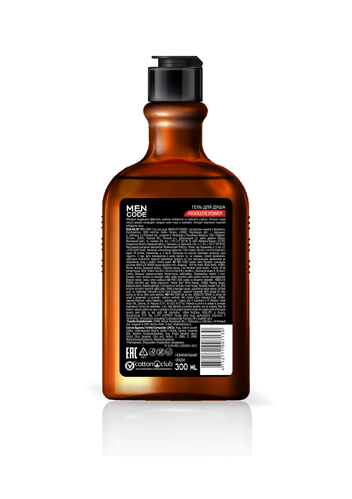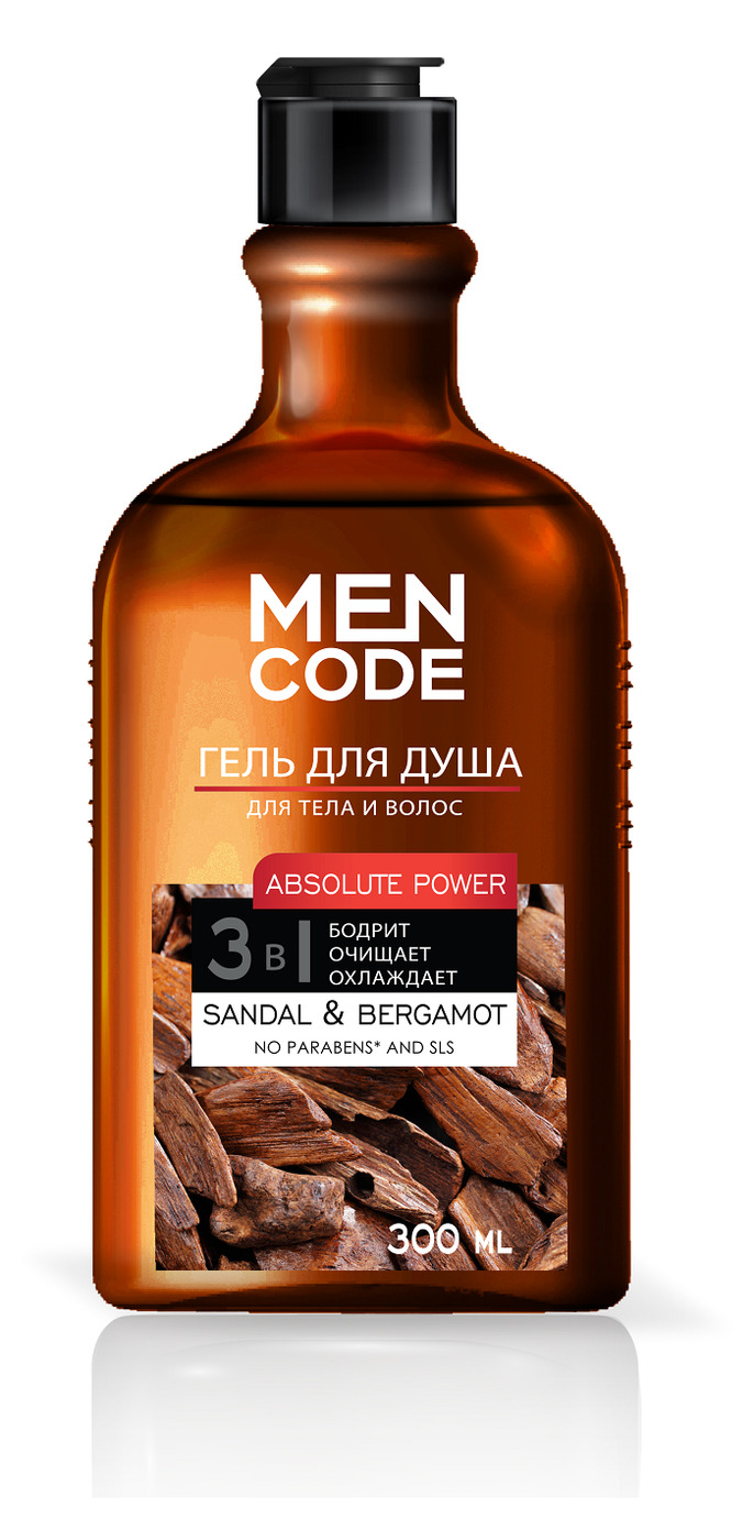 MEN CODE Гель для душа ABSOLUTE POWER с экстрактами сандала и бергамота, флакон/флиптоп, 300мл