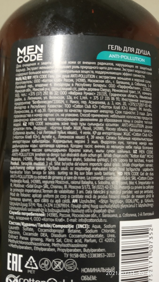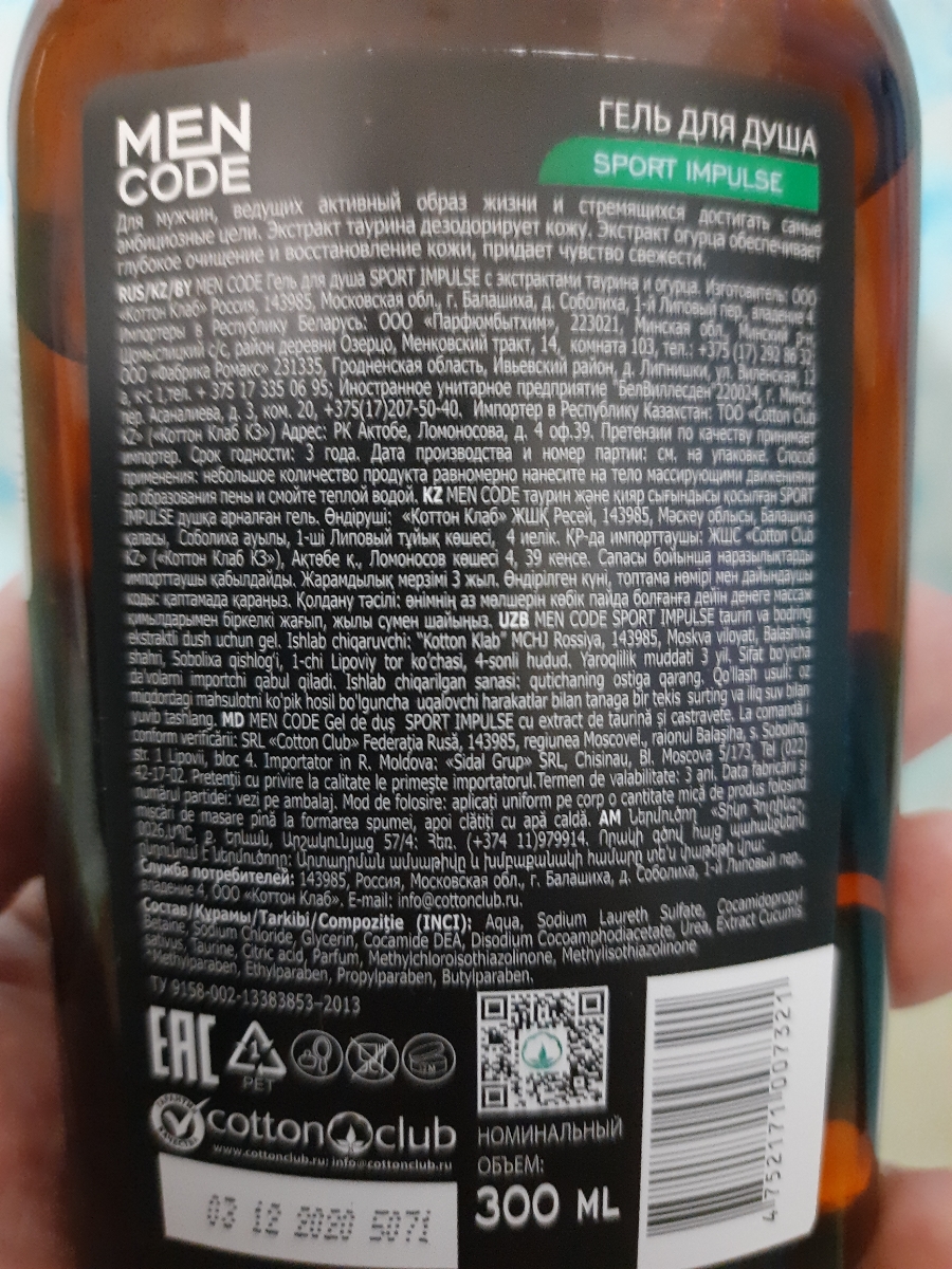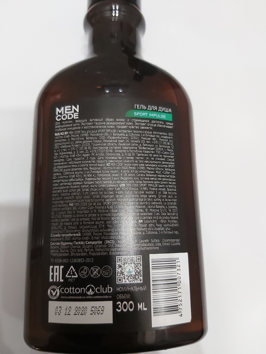 Гель для душа MEN CODE STRONG ENERGY с экстрактом цитрусового дерева, 300мл