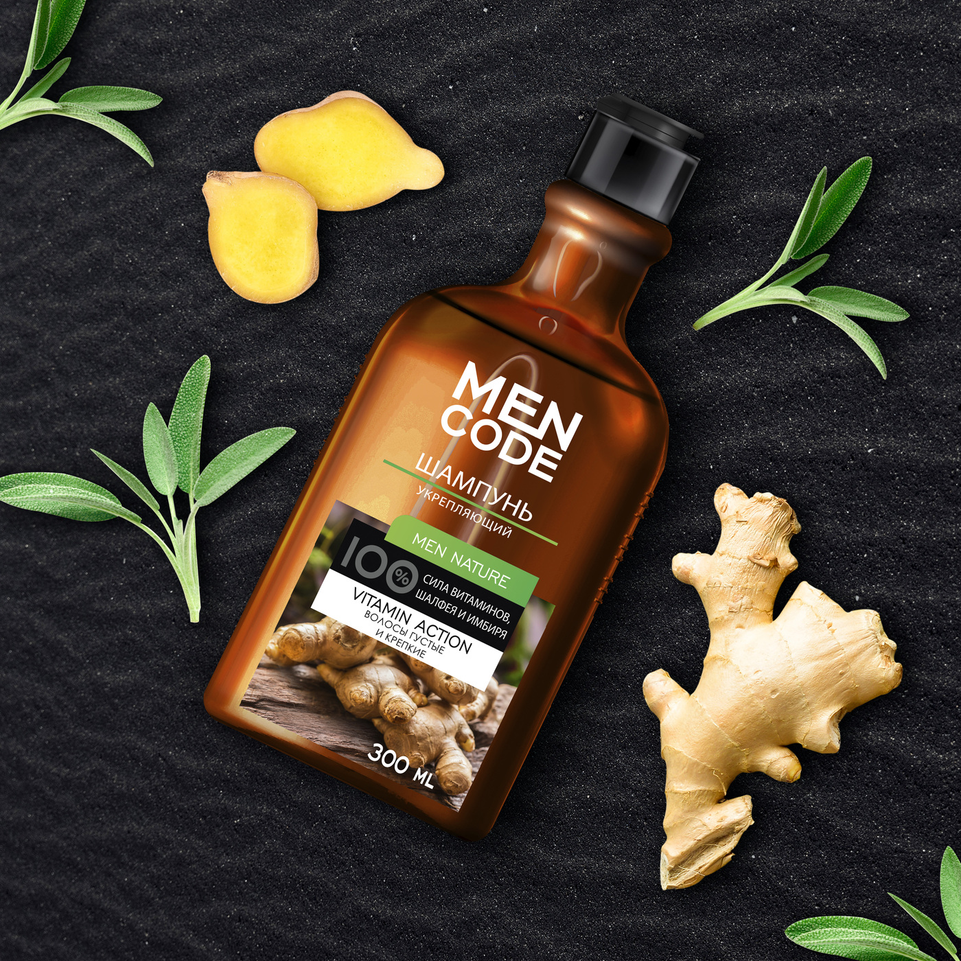 Шампунь MEN CODE MEN NATURE укрепляющий с экстрактом шалфея и имбиря, флакон/флиптоп, 300мл