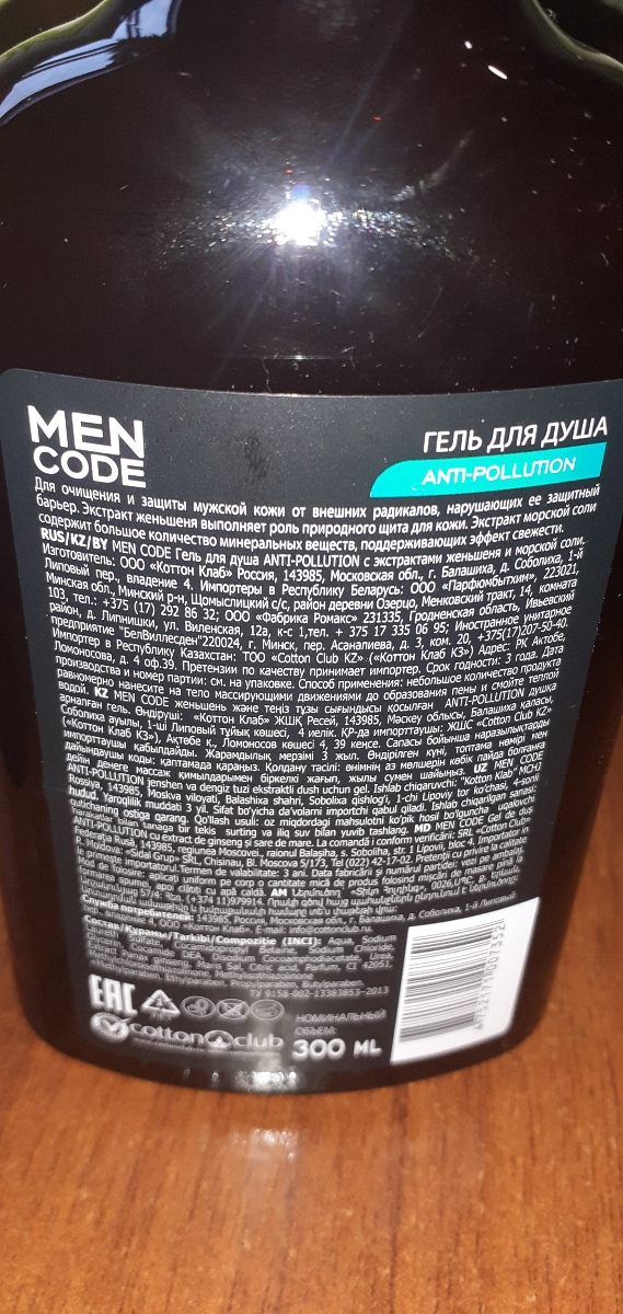 Набор MEN CODE Гель для душа ABSOLUTE POWER, 300мл + Гель для душа ANTI-POLLUTION, 300мл