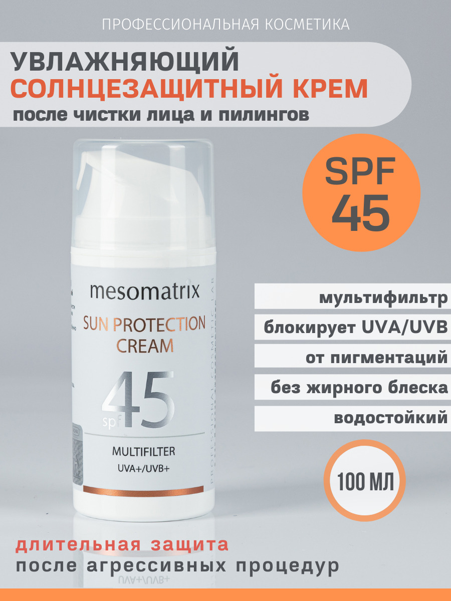 Mesomatrix Professional Крем солнцезащитный от загара увлажняющий водостойкий SUN PROTECTION SPF 45, 100 мл (Аюна)