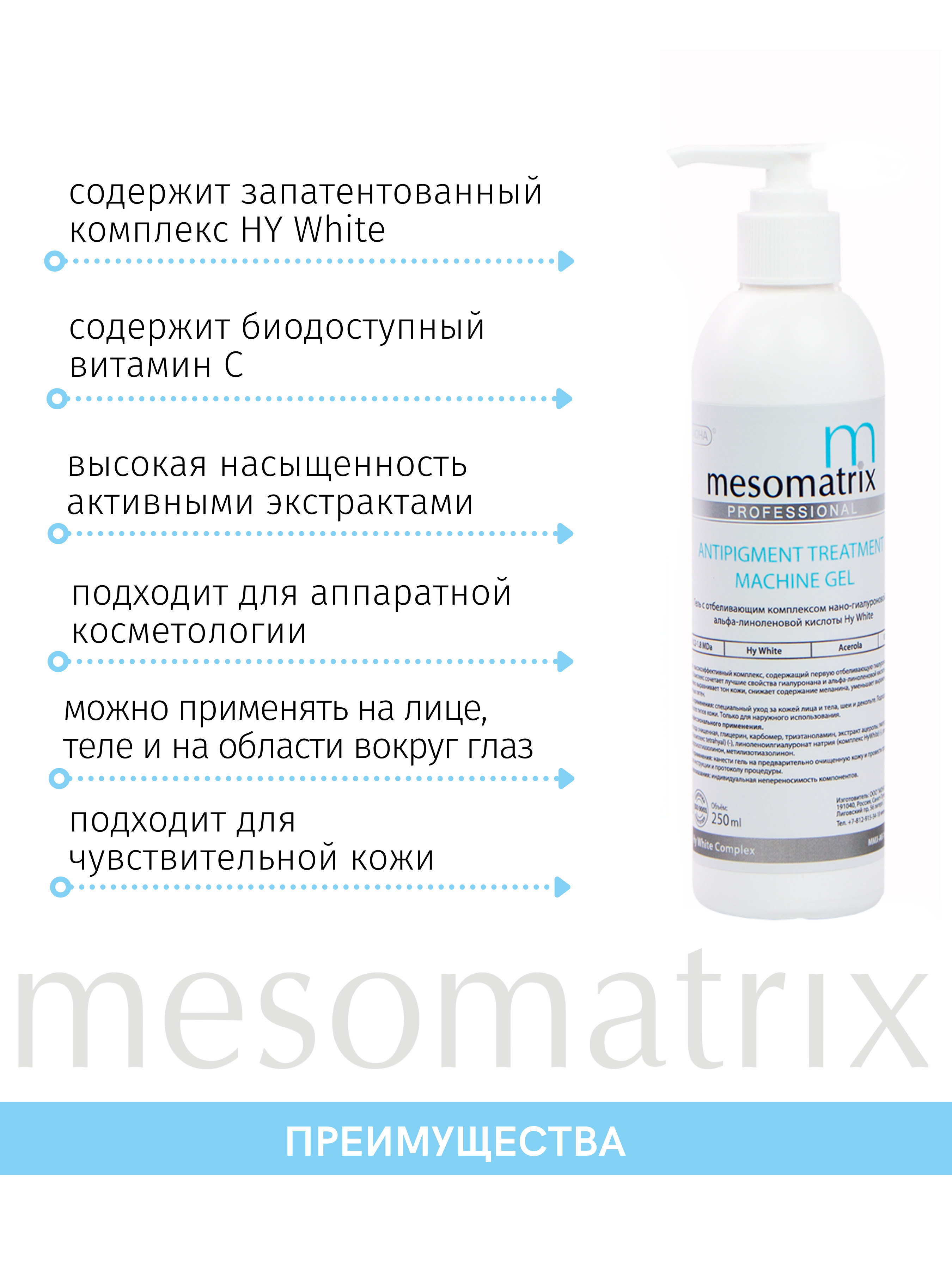 Гель от пигментации с витамином С для аппаратных процедур осветляющий ANTIPIGMENT TREATMENT 250 мл Mesomatrix Professional (Аюна)
