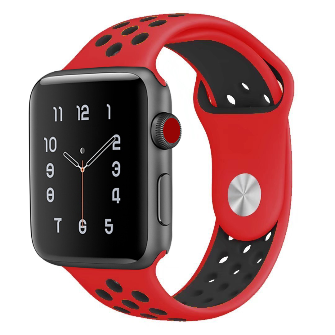 Спортивный ремешок с перфорацией для Apple Watch 42/44 mm M/L, Черно-красный