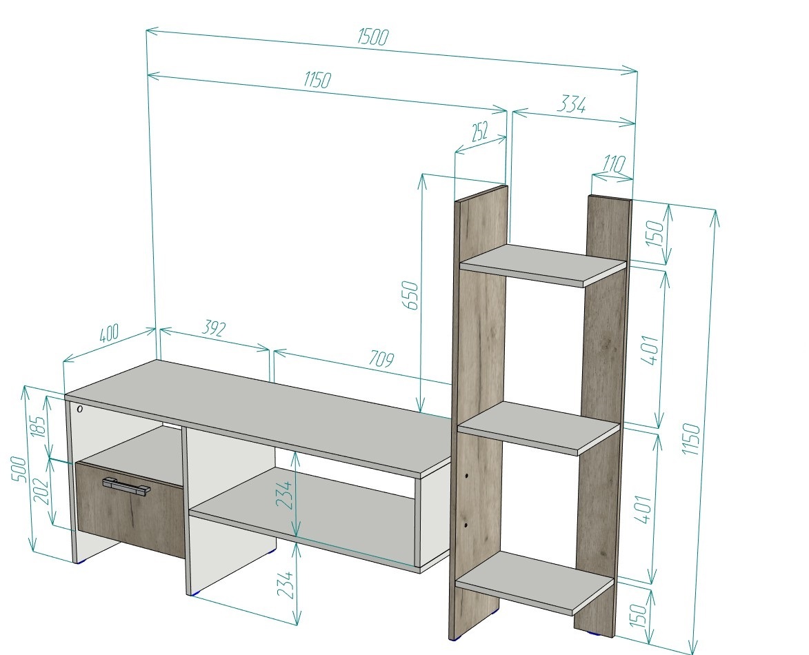 Полка МФМ Настенная Прямая Линия ПН2, 116х26х34 см, 1 шт.