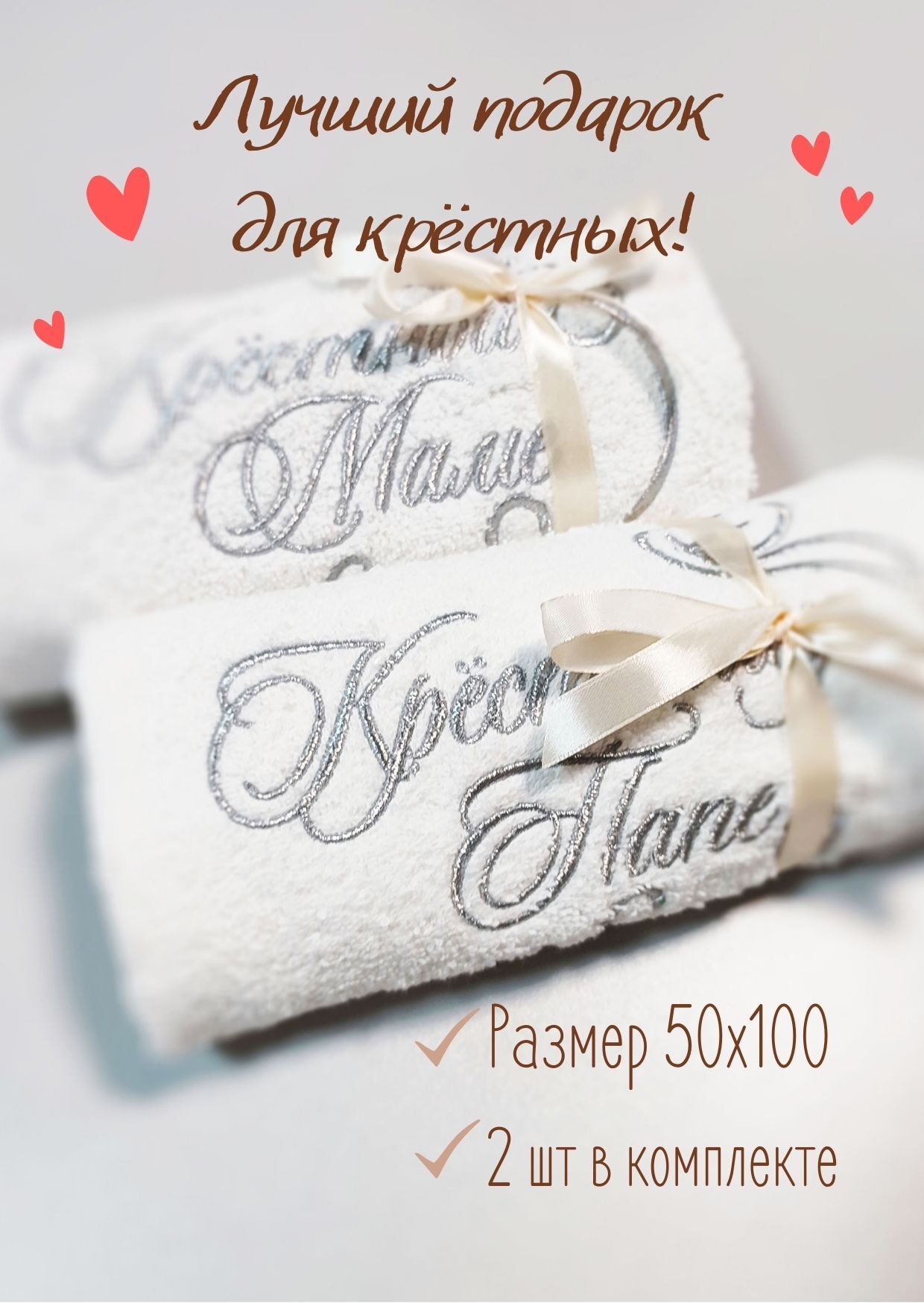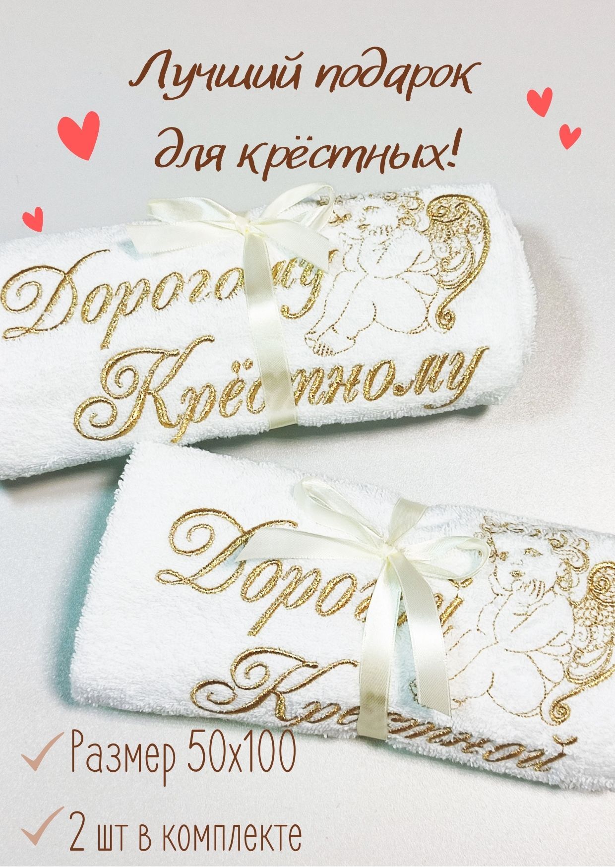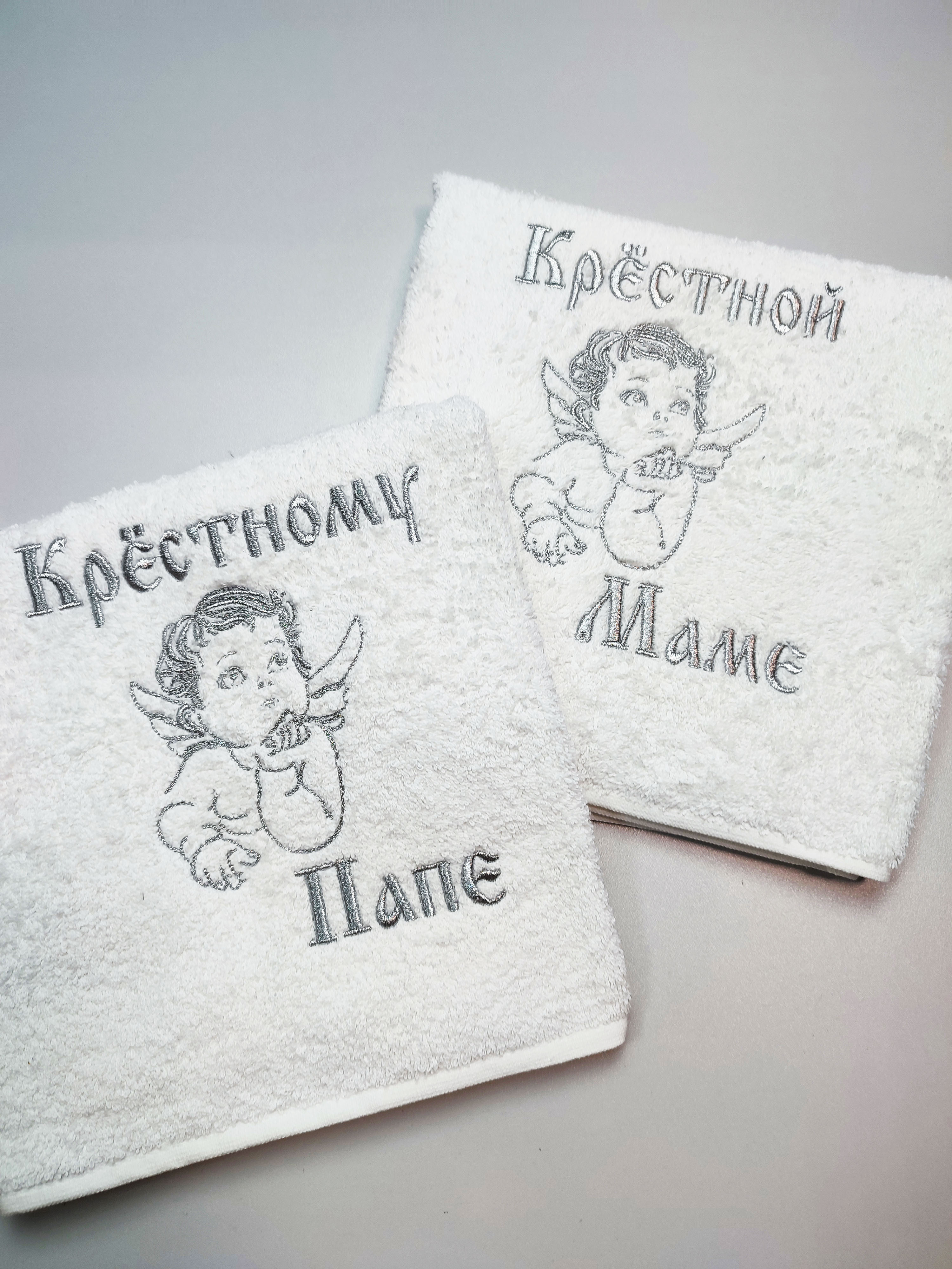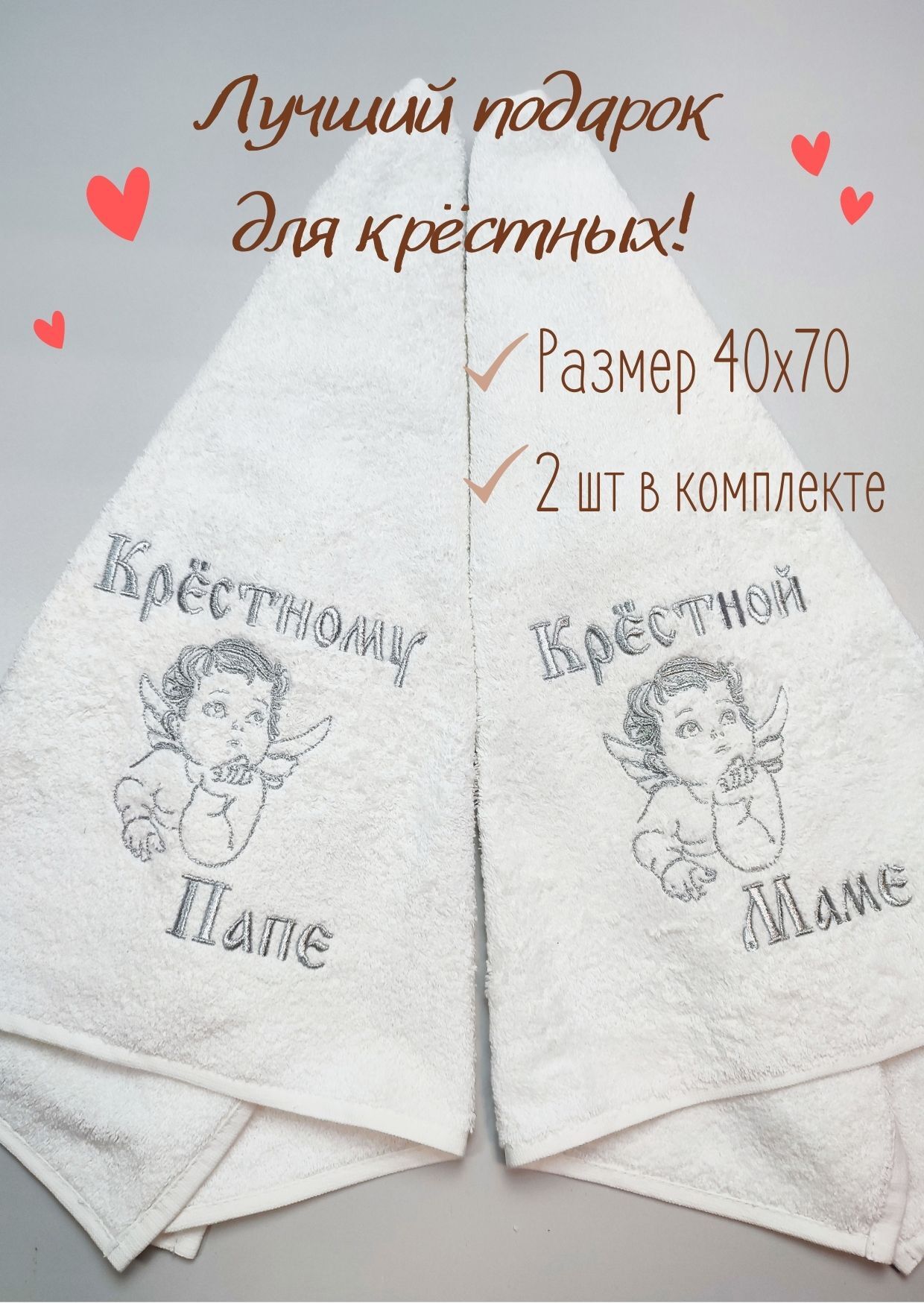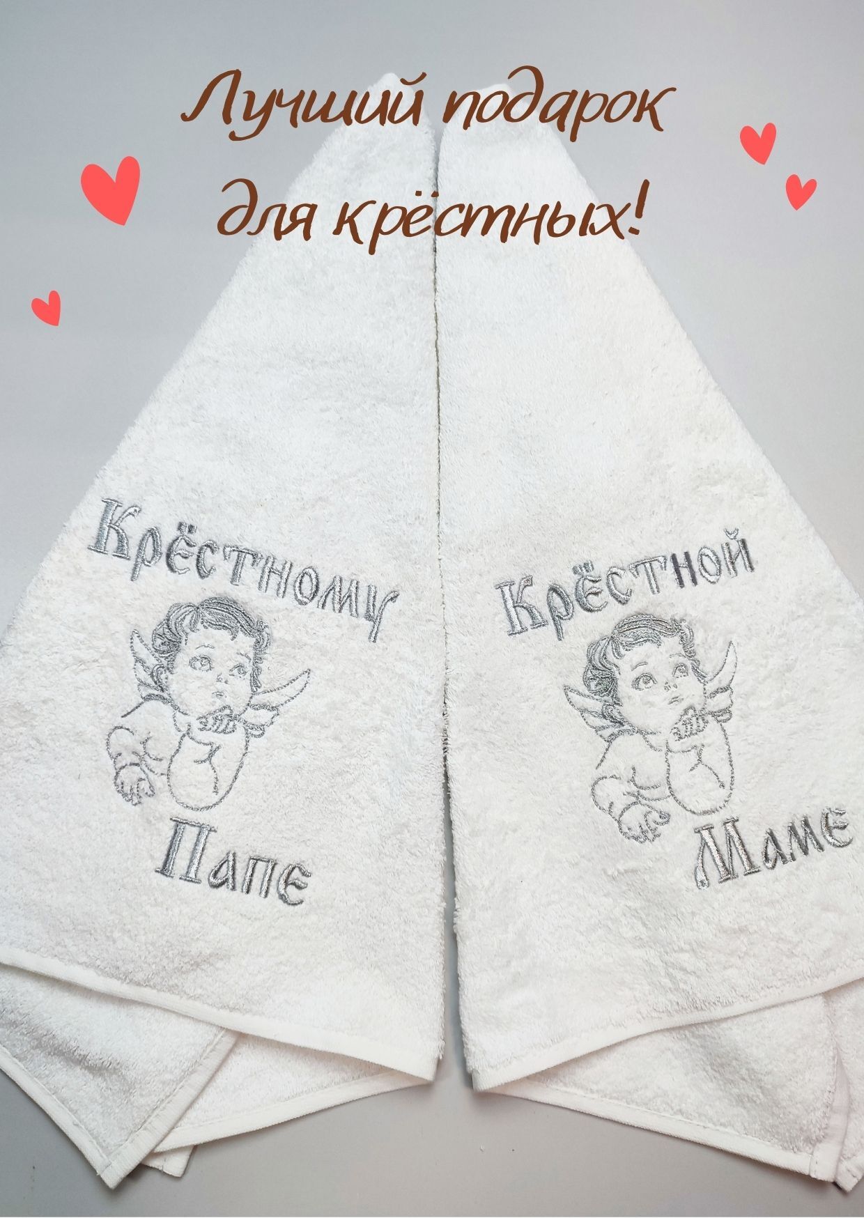 Подарок для крестных - Комплект махровых полотенец для крестных / Подарок на крещение / Полотенце для крестных с вышивкой
