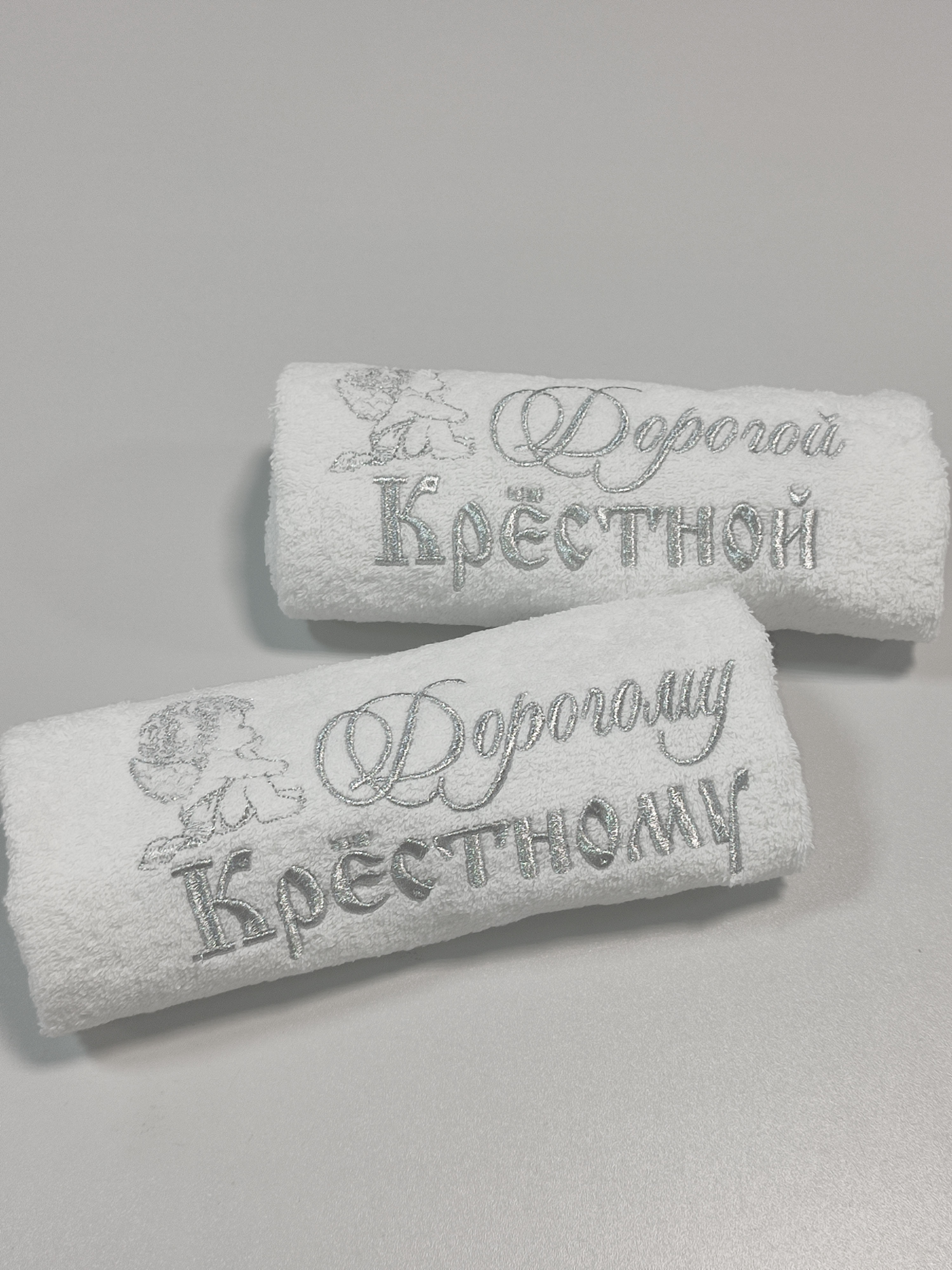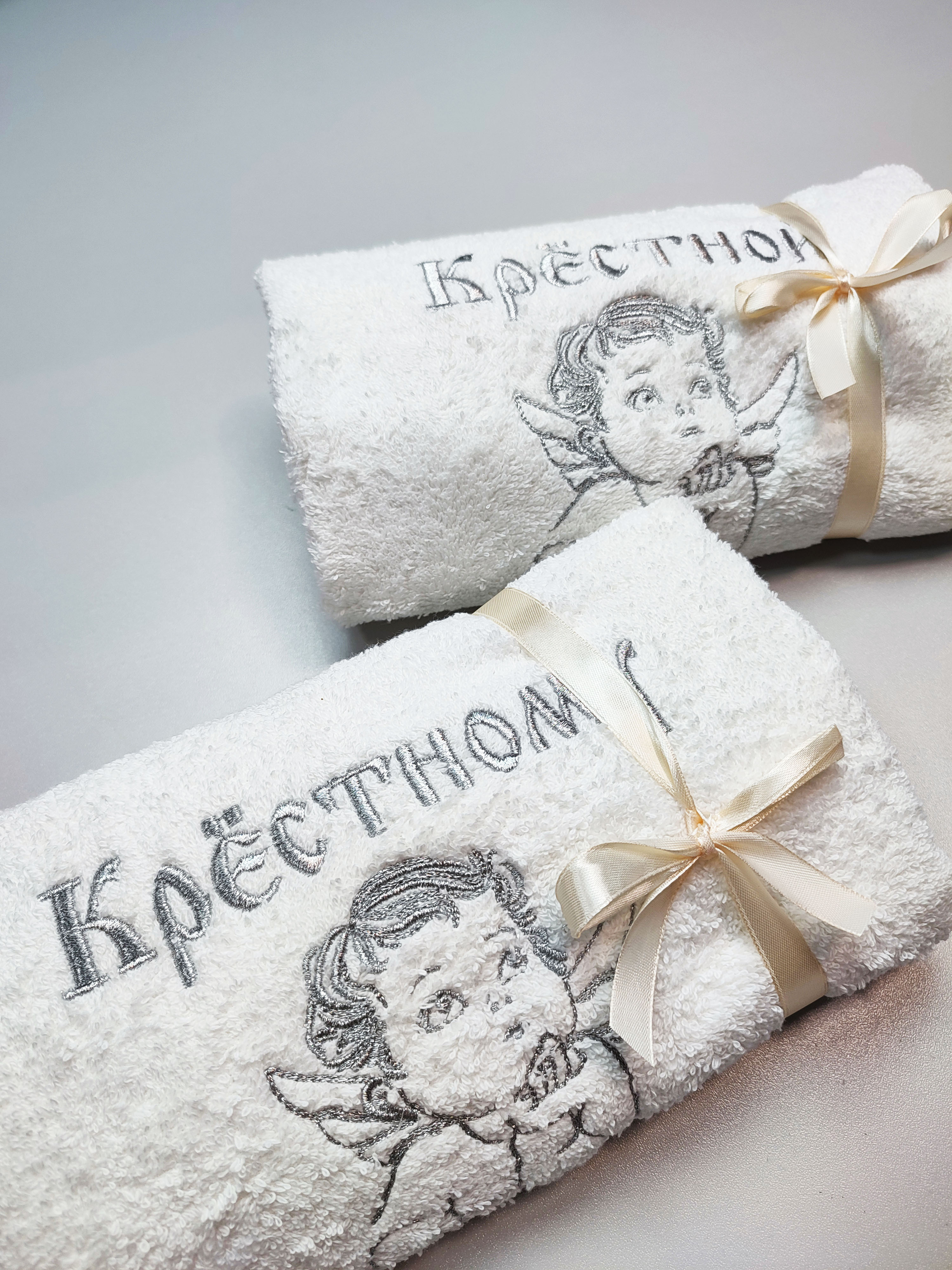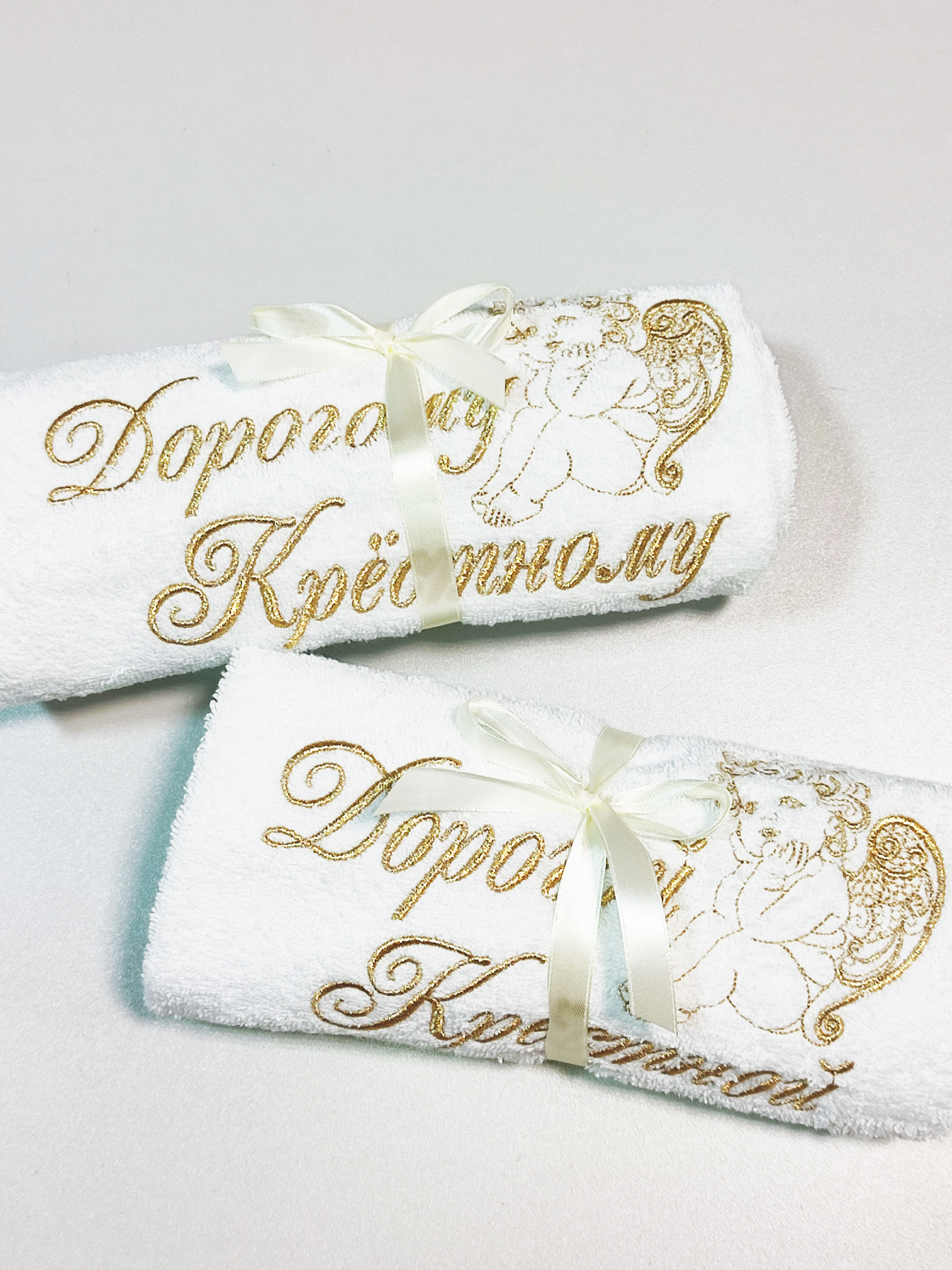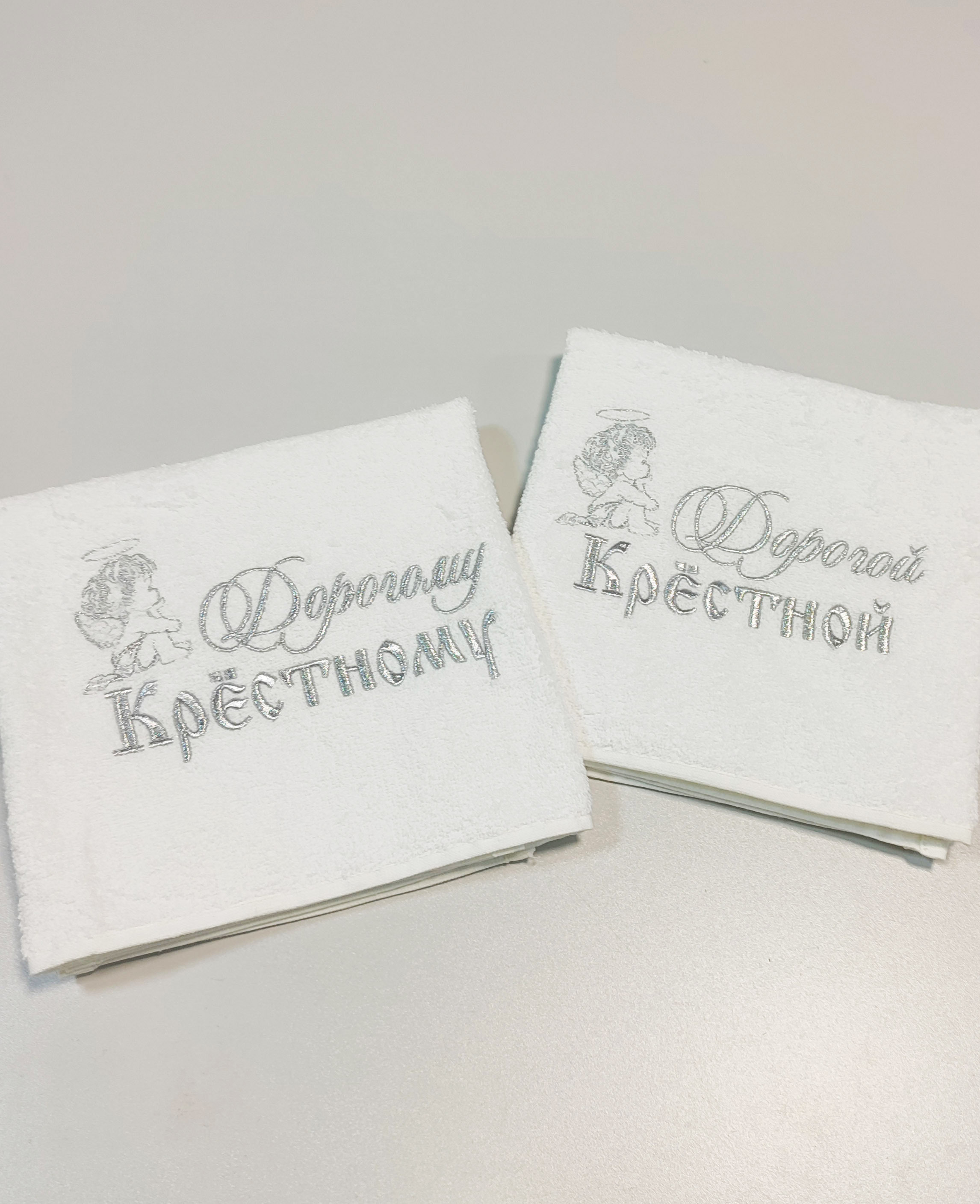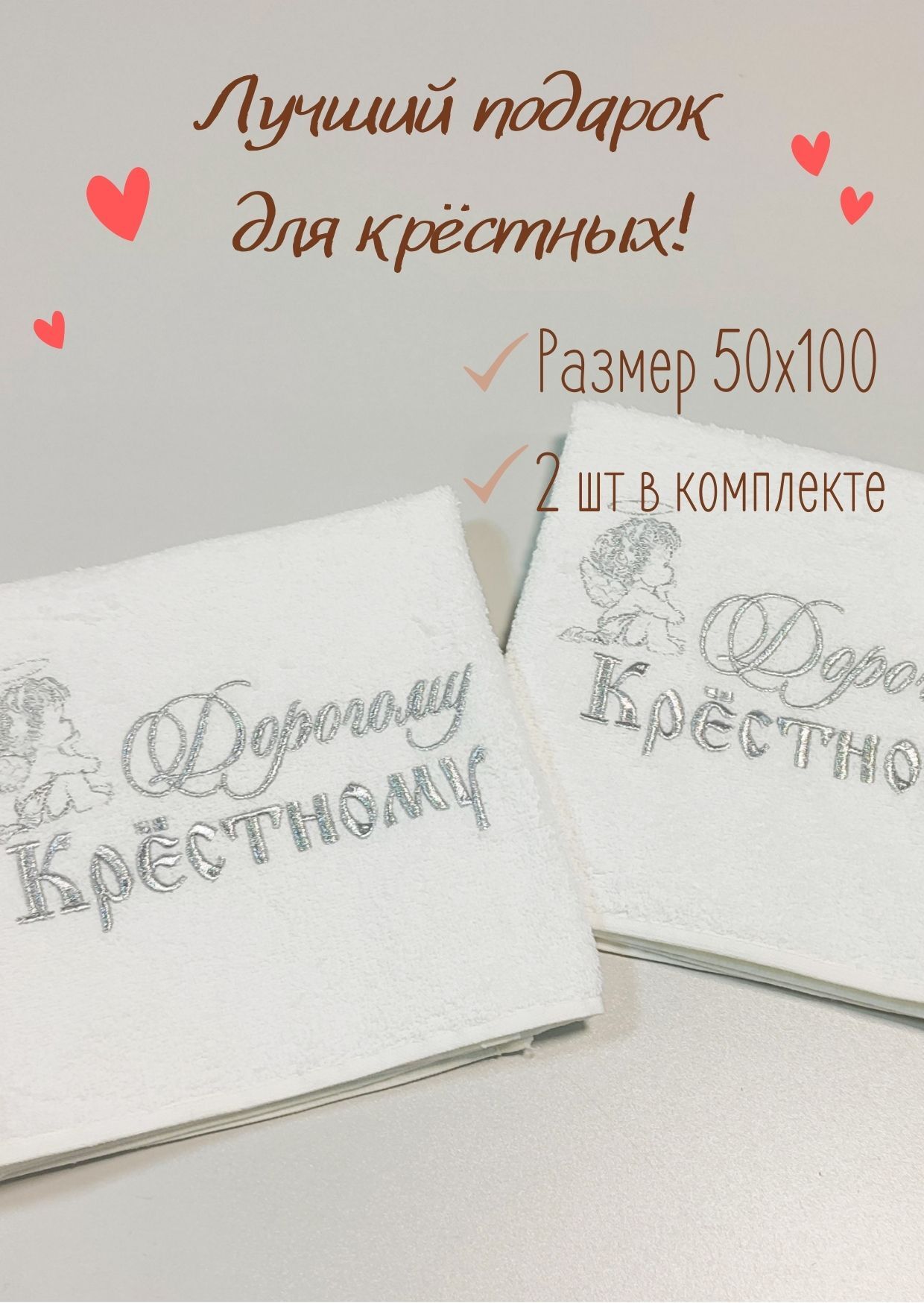 Подарок для крестных - Комплект махровых полотенец для крестных / Подарок на крещение / Полотенце для крестных с вышивкой