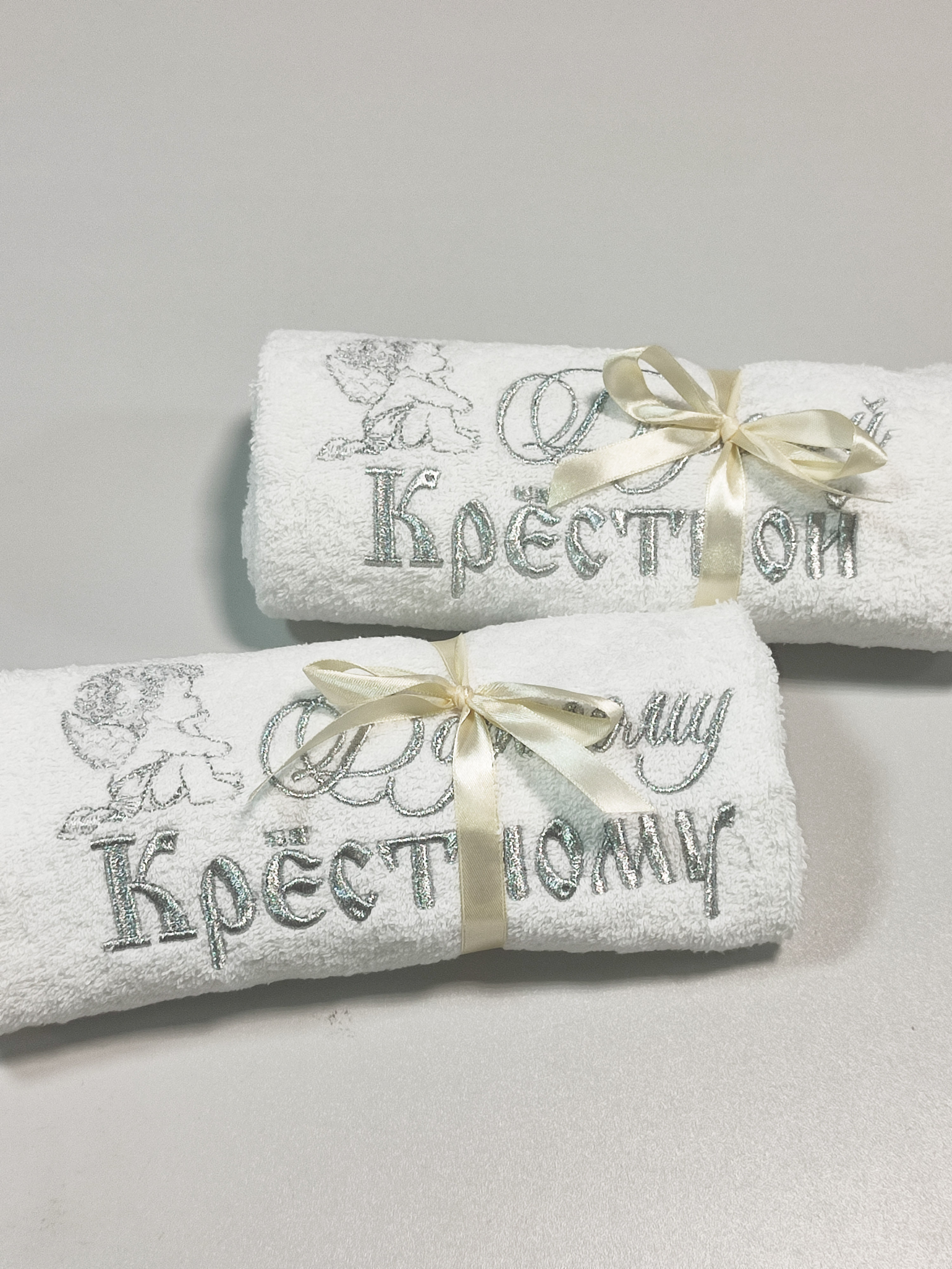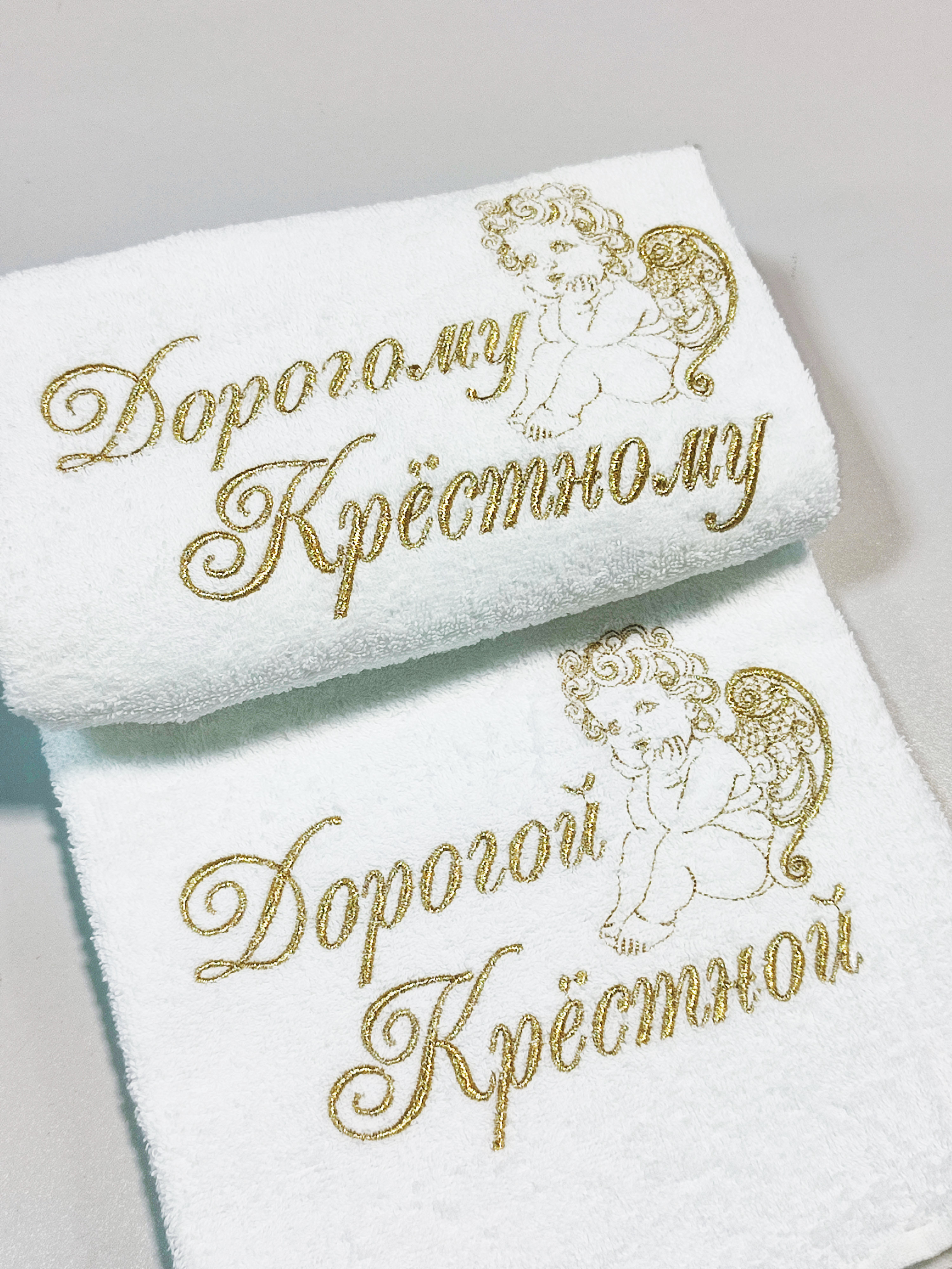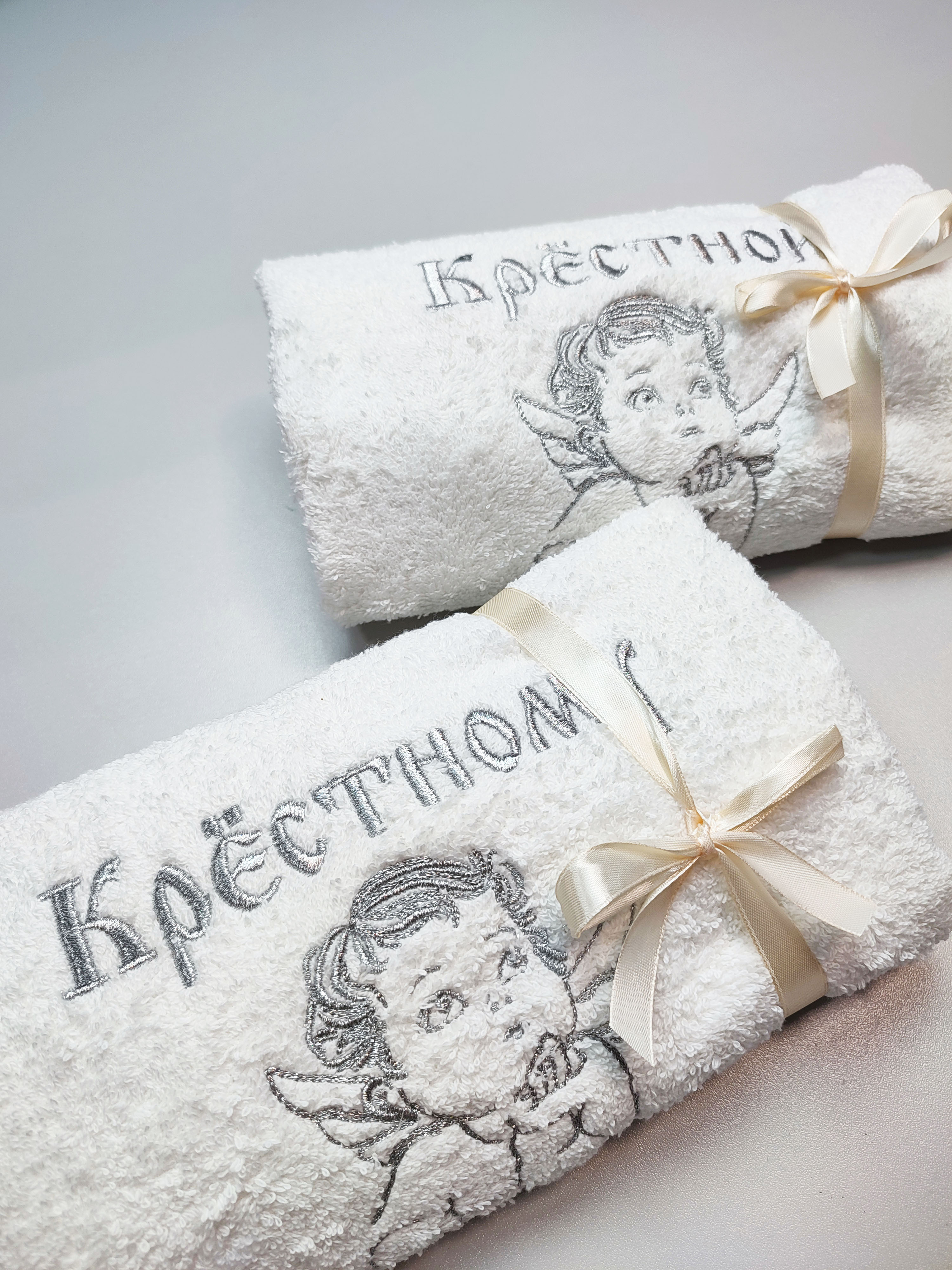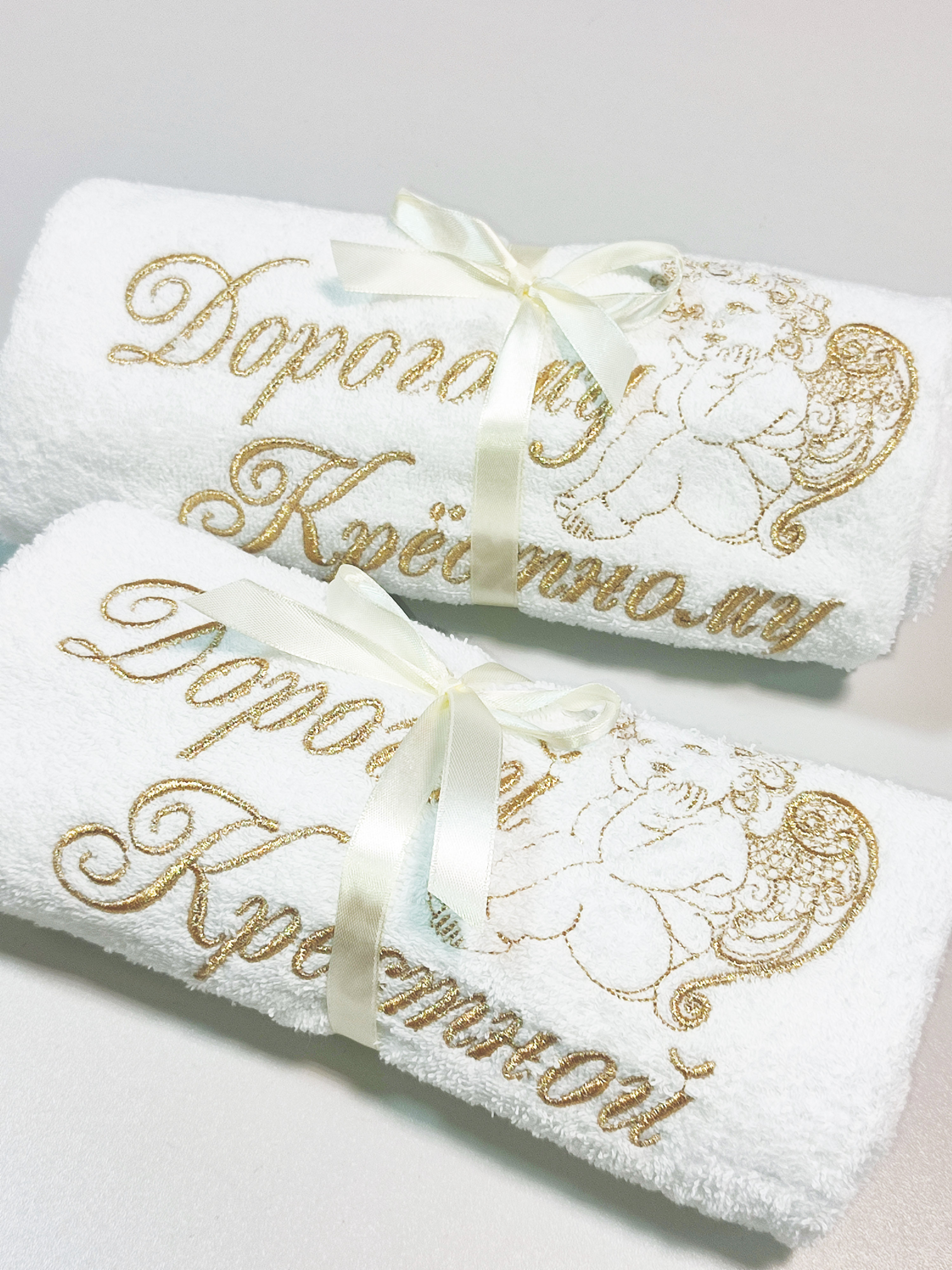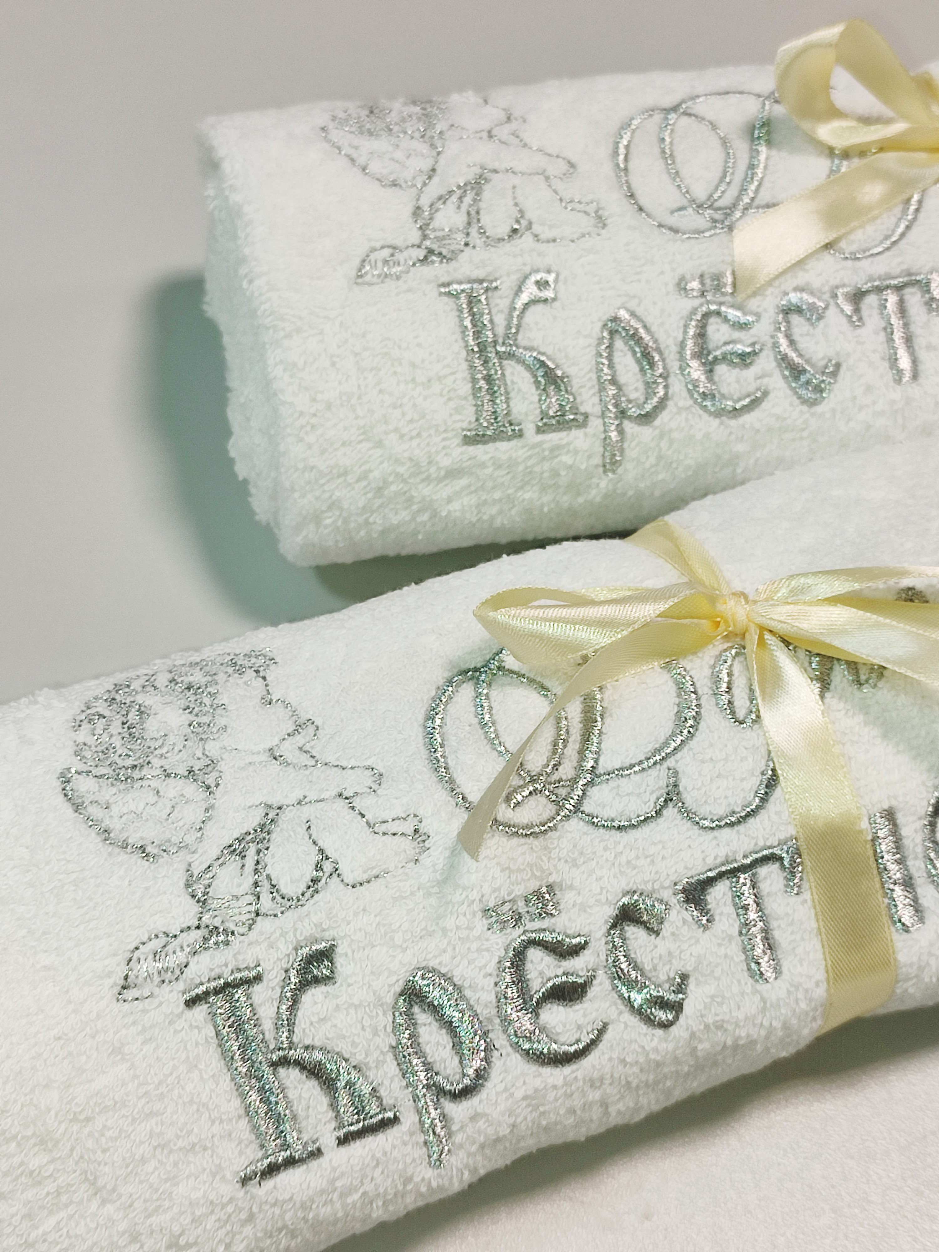 Подарок для крестных - Комплект махровых полотенец для крестных / Подарок на крещение / Полотенце для крестных с вышивкой
