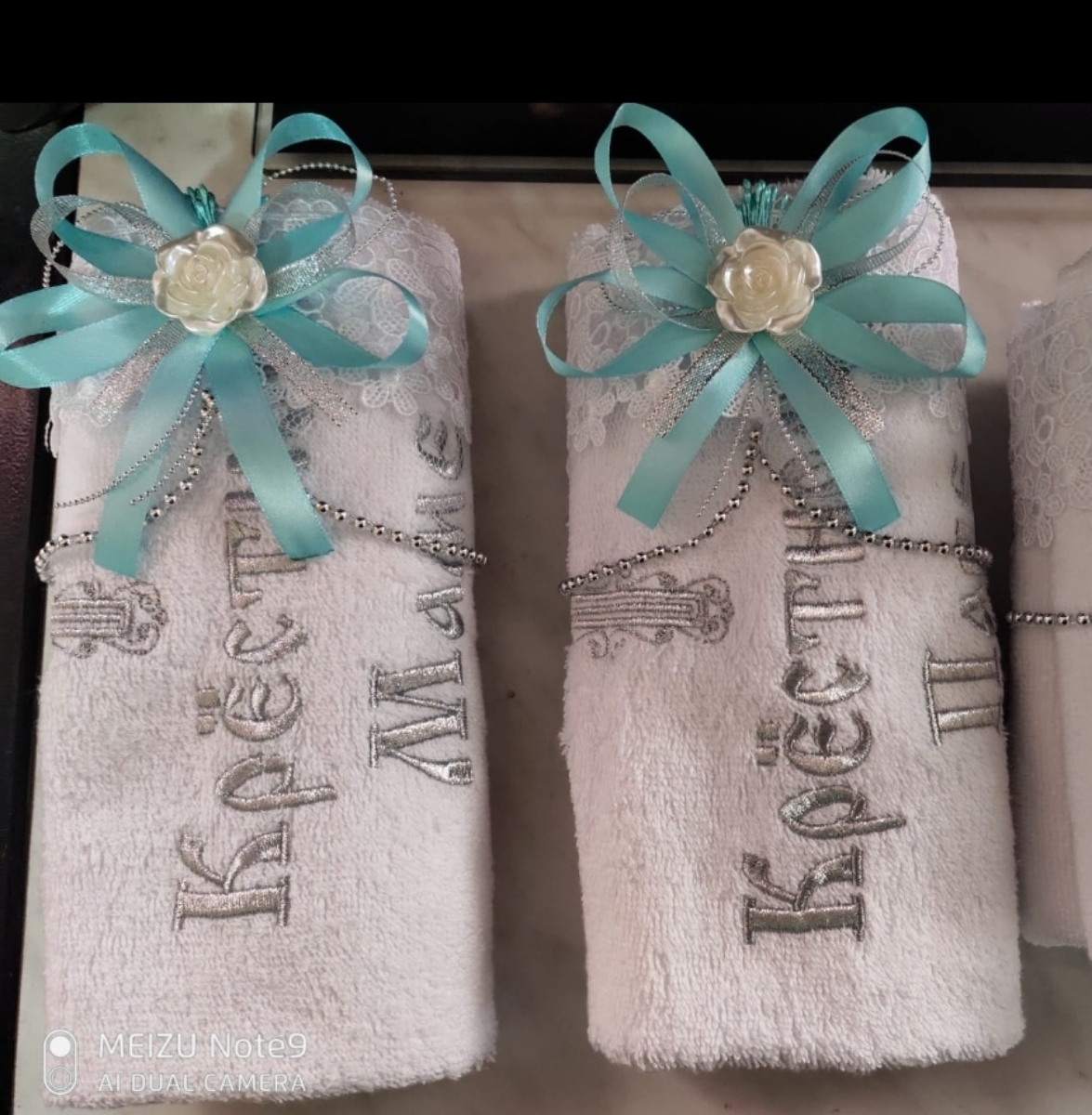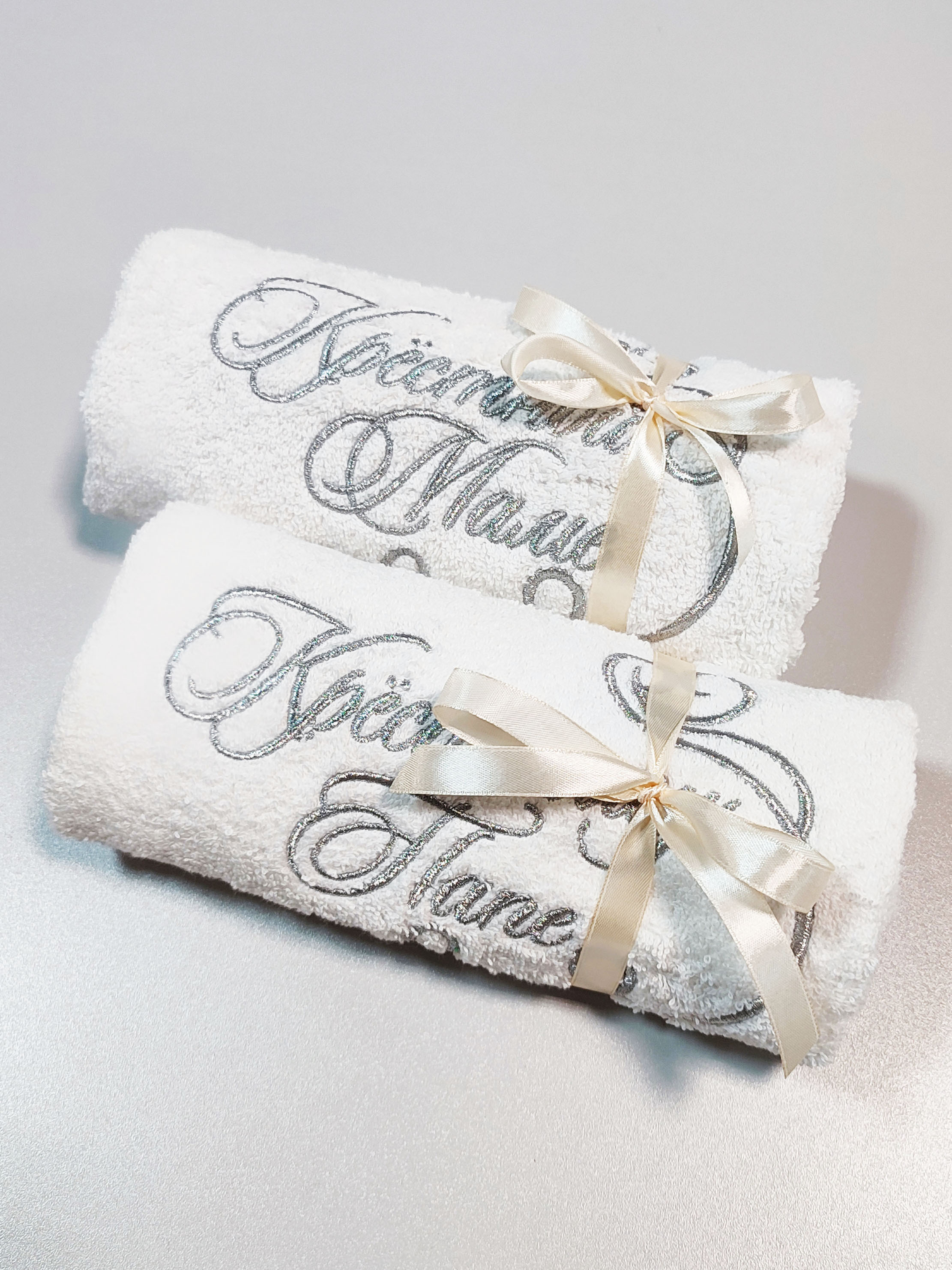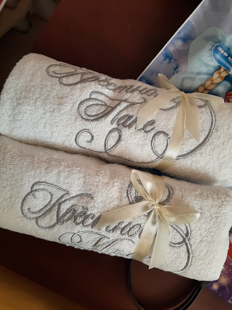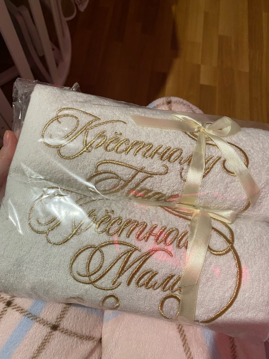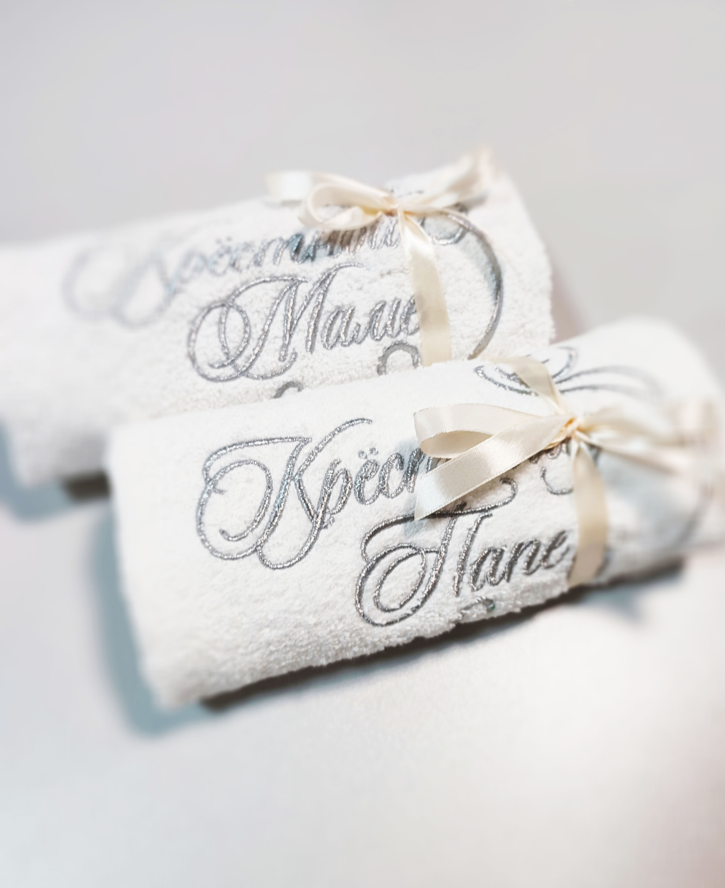 Подарок для крестных - Комплект махровых полотенец для крестных / Подарок на крещение / Полотенце для крестных с вышивкой