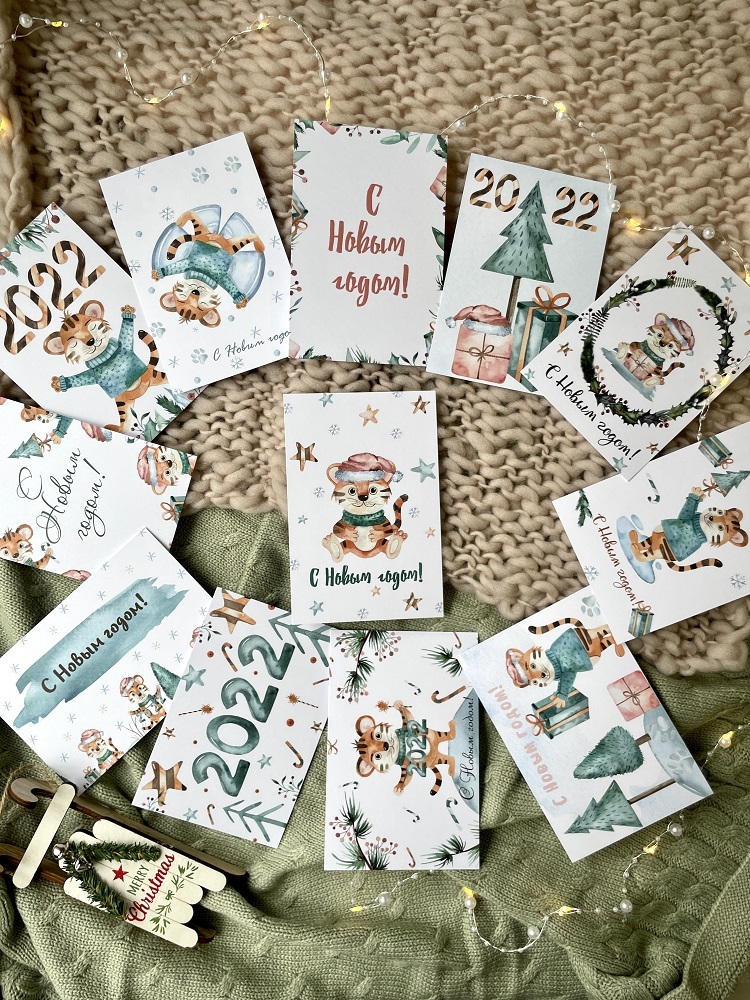 Набор новогодних открыток Тигры