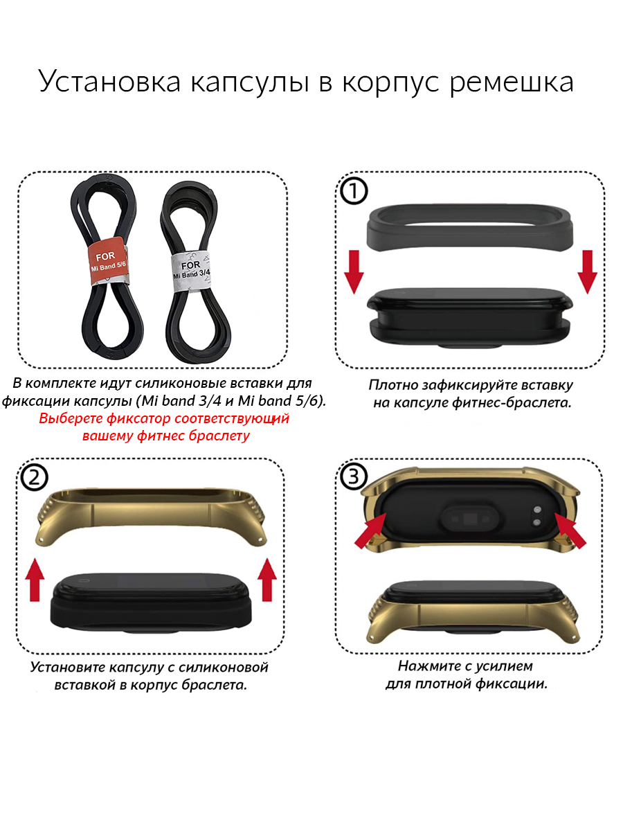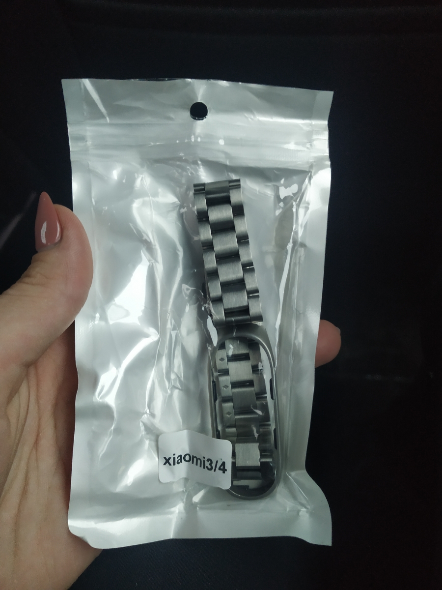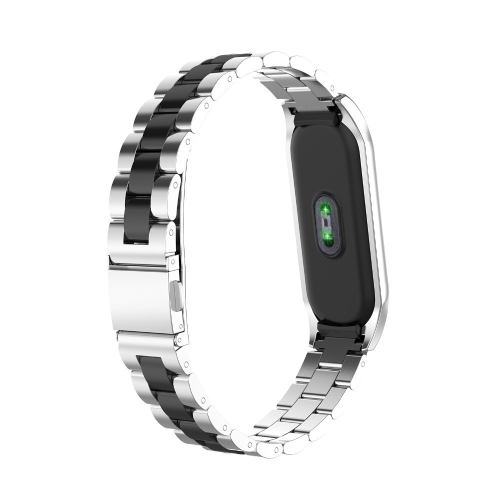 Ремешок металлический (серебристый с чёрной полоской) для Xiaomi Mi Band 3/4