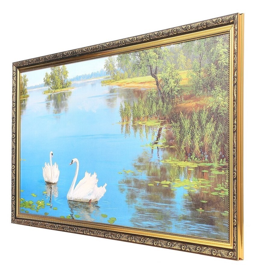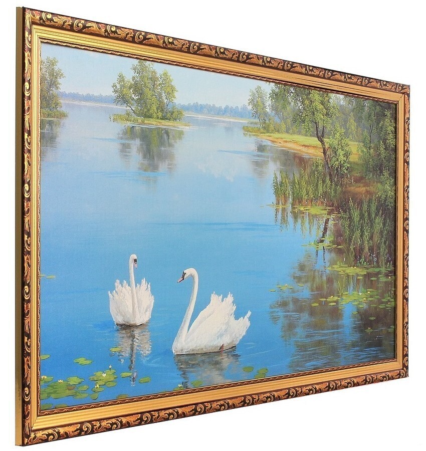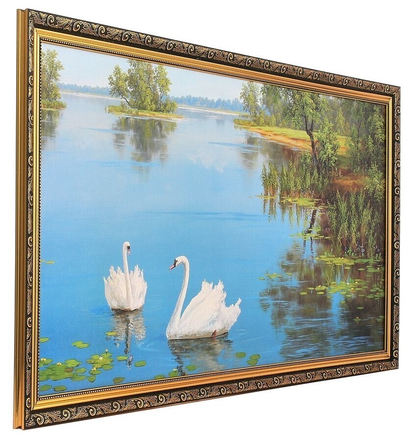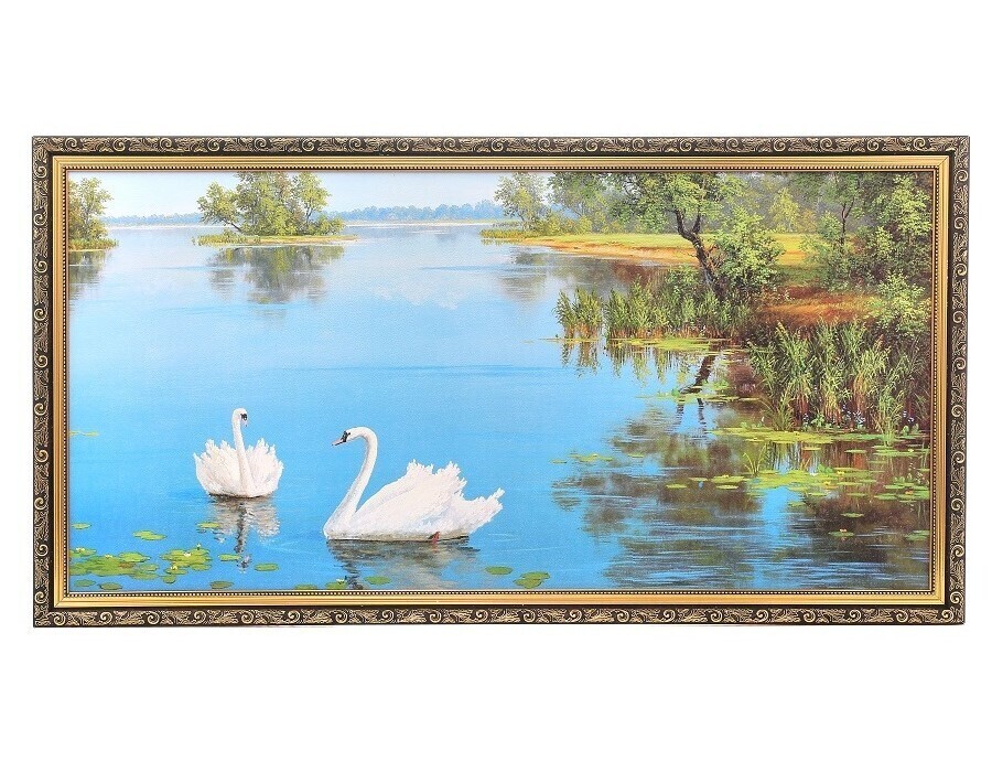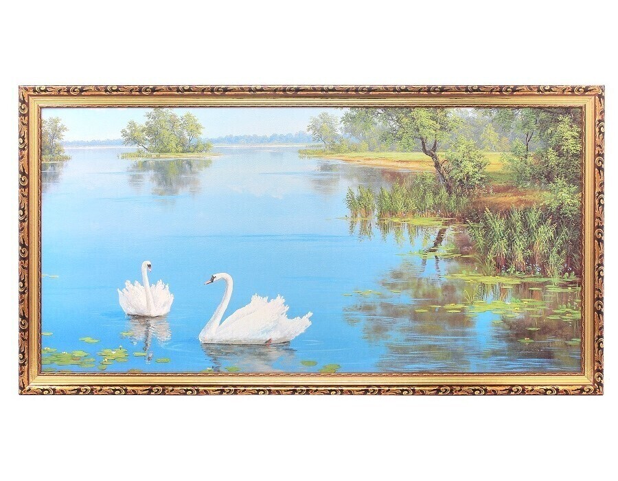Картина в раме большая Milarte "Два белых лебедя/ Река", 55х105 см