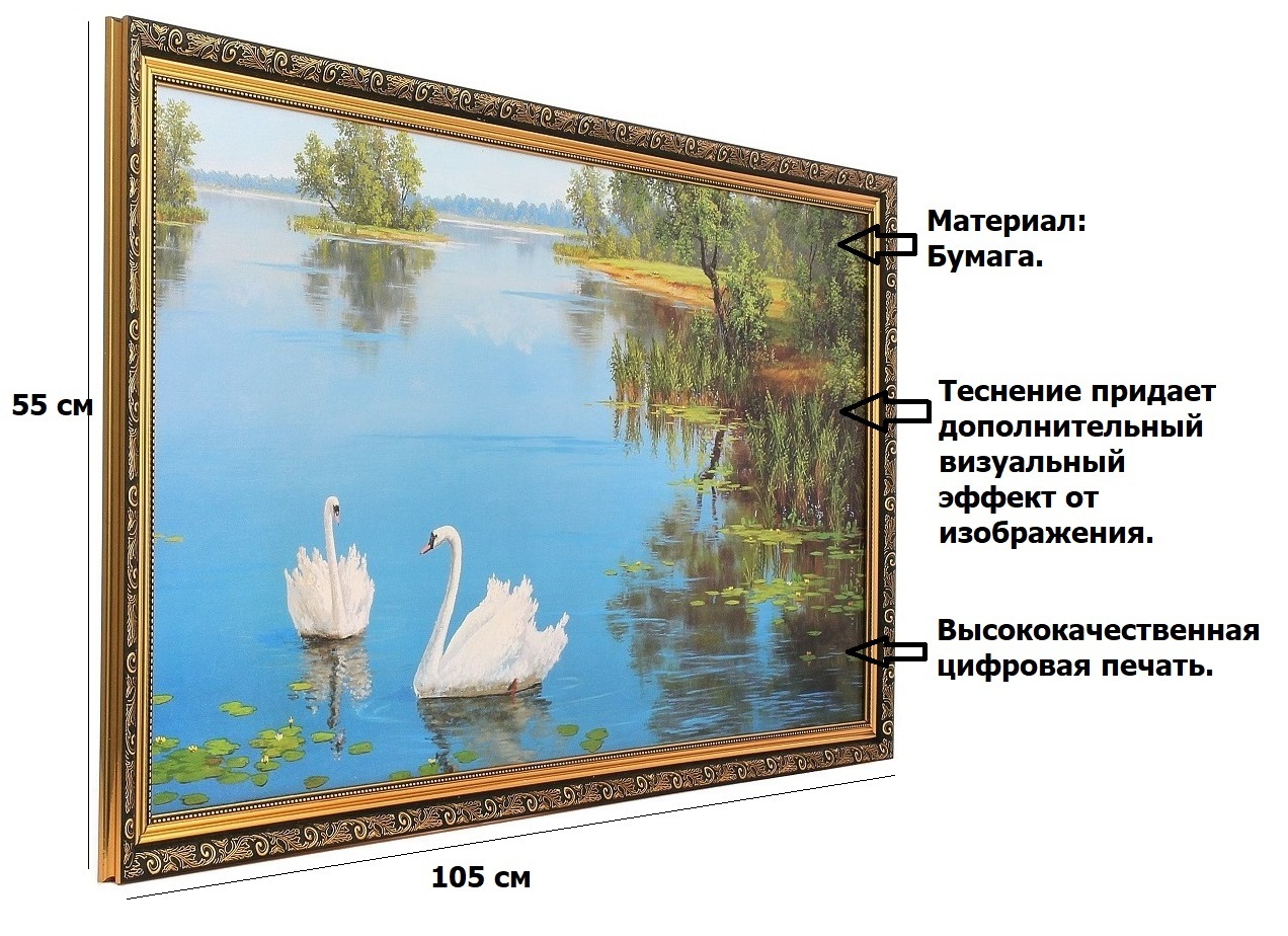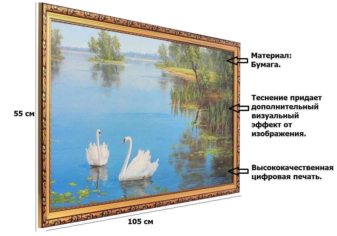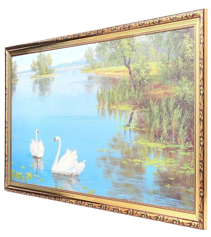Картина в раме большая Milarte "Два белых лебедя/ Река", 55х105 см