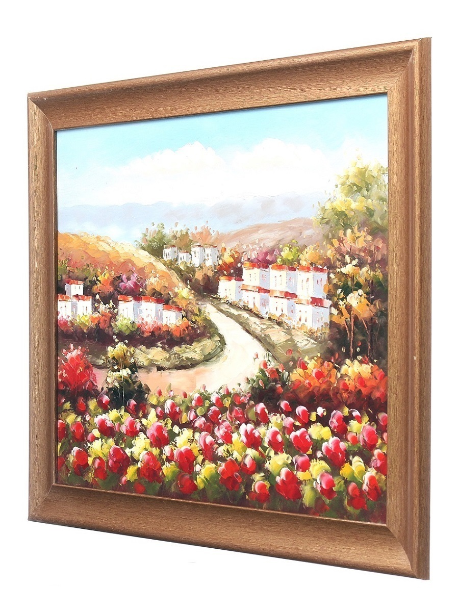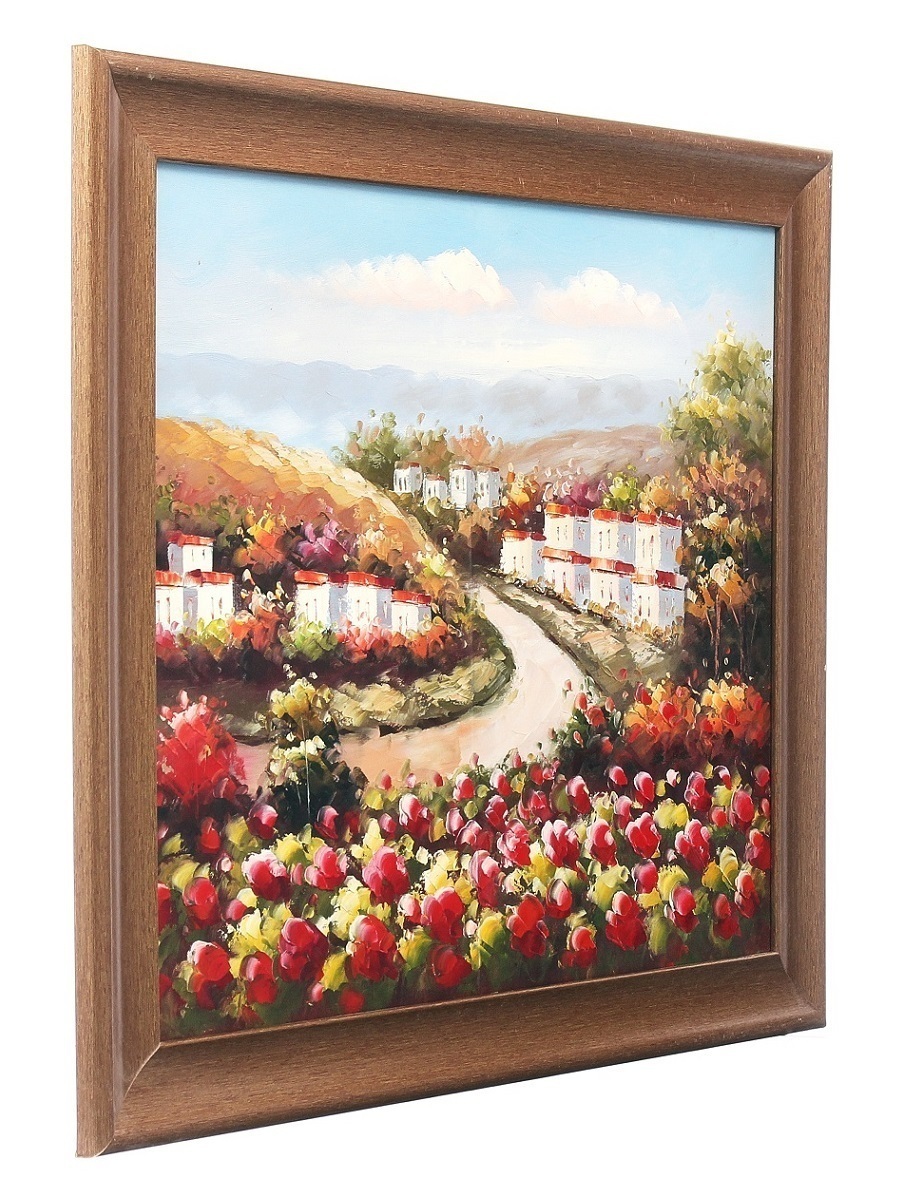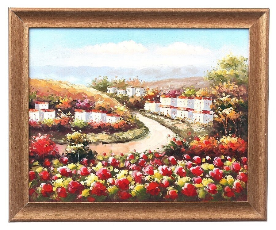 Картина маслом в раме Milarte "Деревня на окраине/ Пейзаж/ Маки", 50х60 см