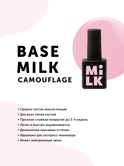 База для гель-лака Milk камуфлирующая - Silk №20, 9 мл.