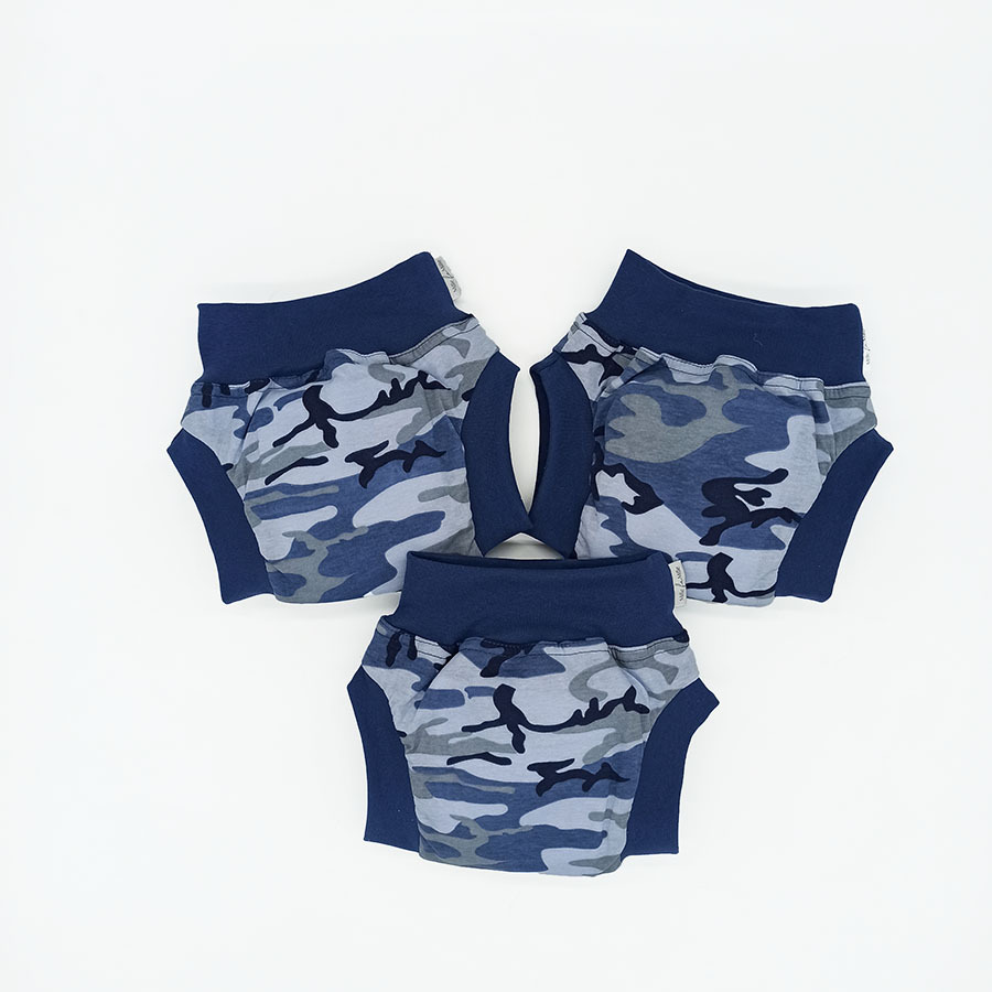 Многоразовые подгузники-трусики цвет голубой камуфляж MilleFaMille размер 80-86