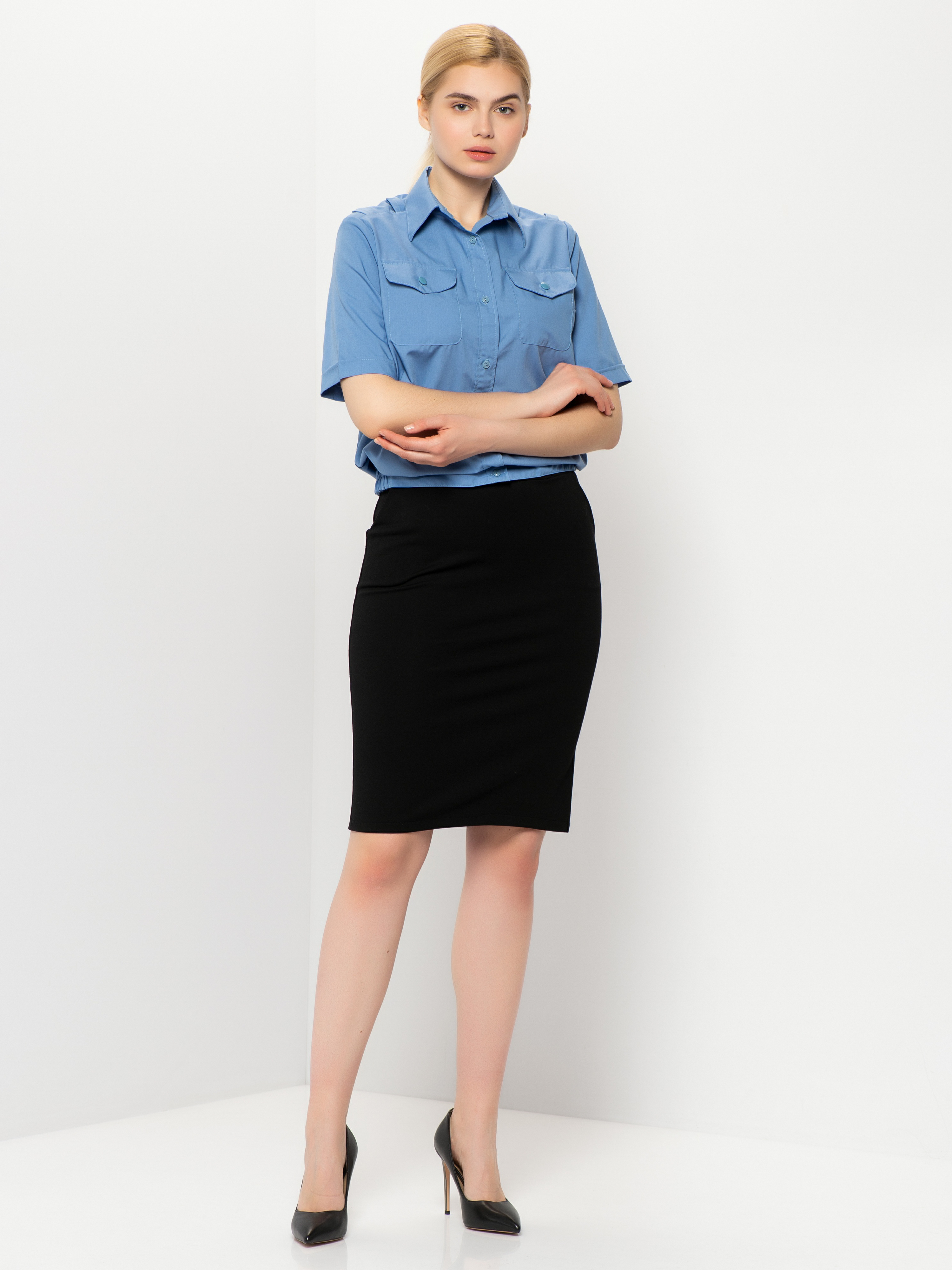 Рубашка женская / ФССП / одежда форменная / с коротким рукавом / уставная / рубашка голубая