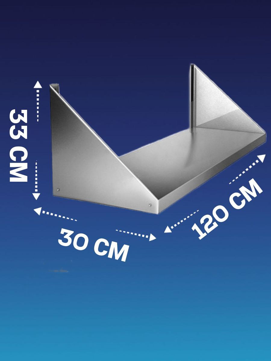 Полка производственная 120 х 30 х 30 см, настенная, навесная, подвесная, прямая, кухни, посуды, специй, мебель