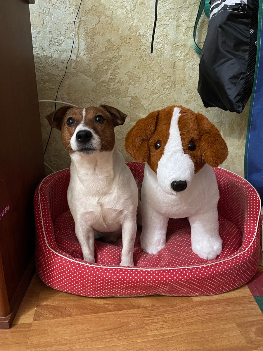 Подарок на 8 марта Джек рассел терьер большой сидячий / мягкая игрушка / Плюшевая собака / 50 х40