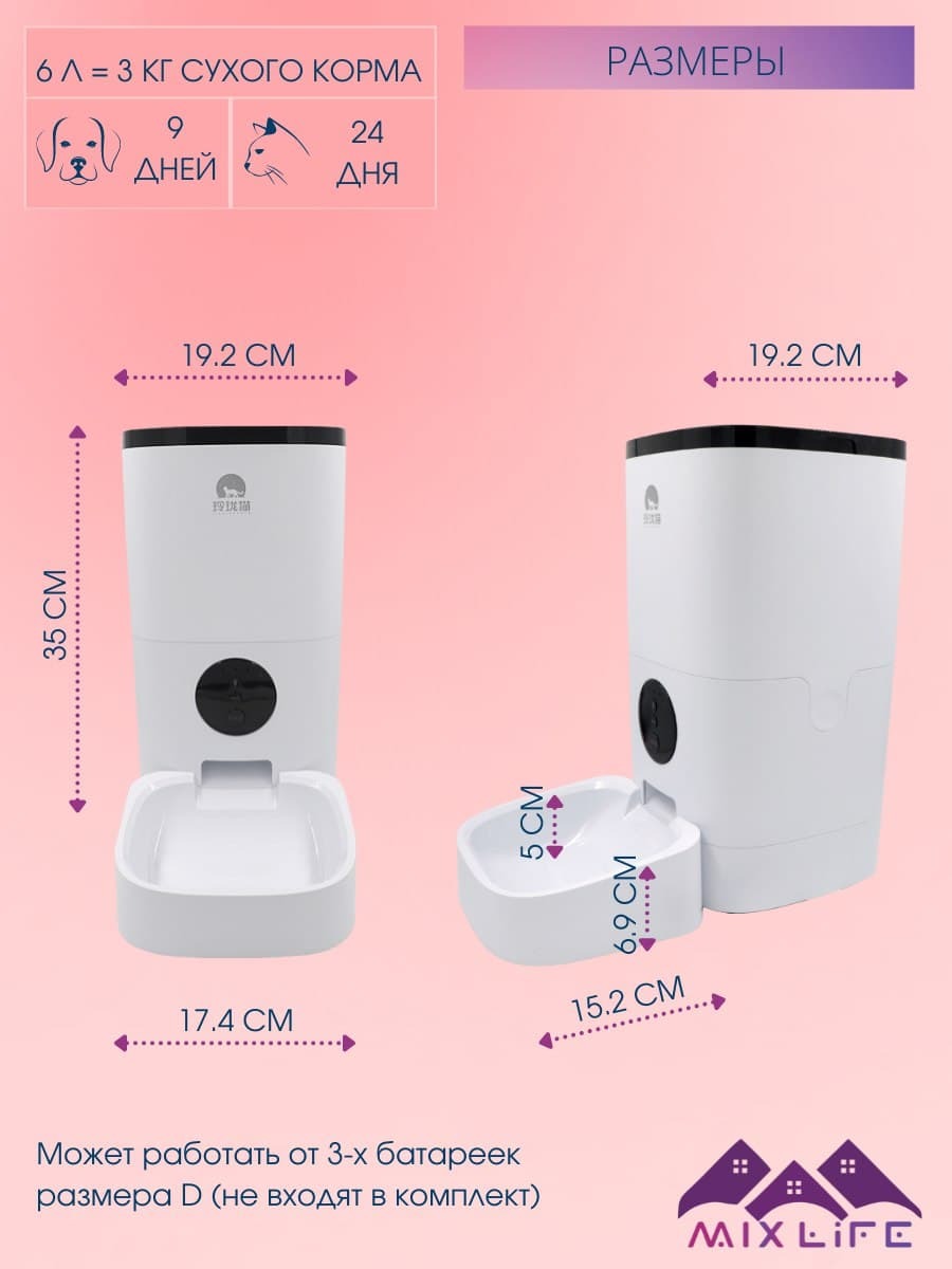 Автоматическая кормушка для домашних животных 6 литров/автокормушка для собак и для кошек