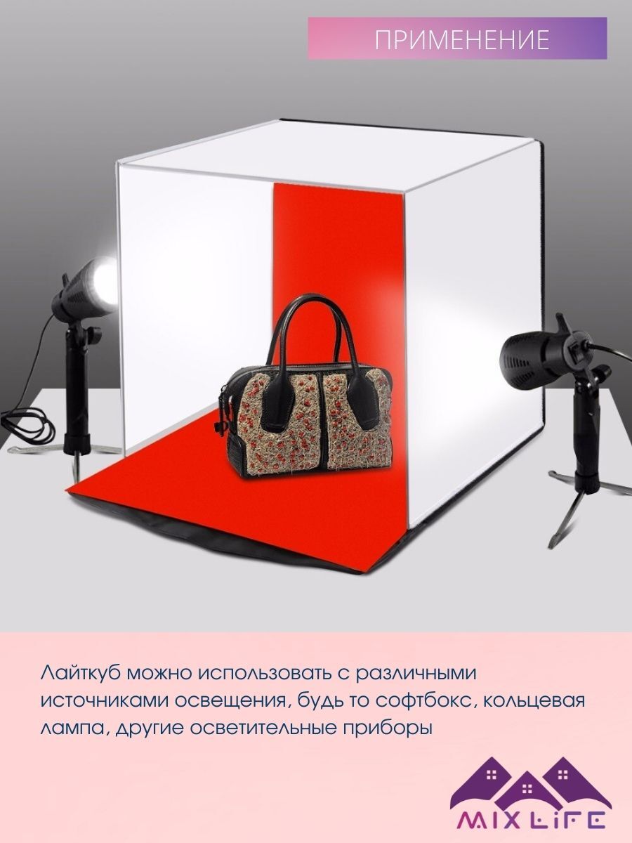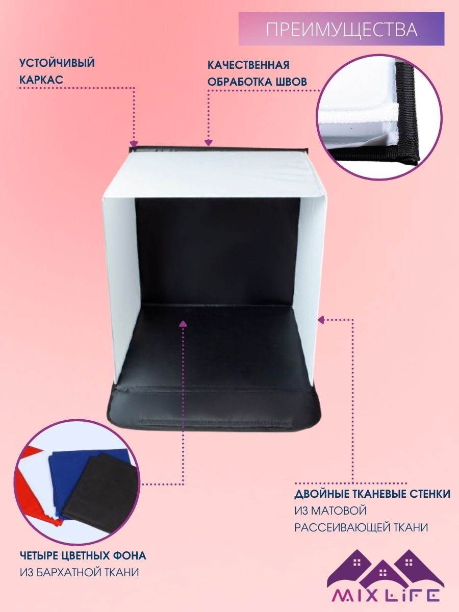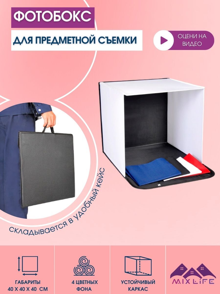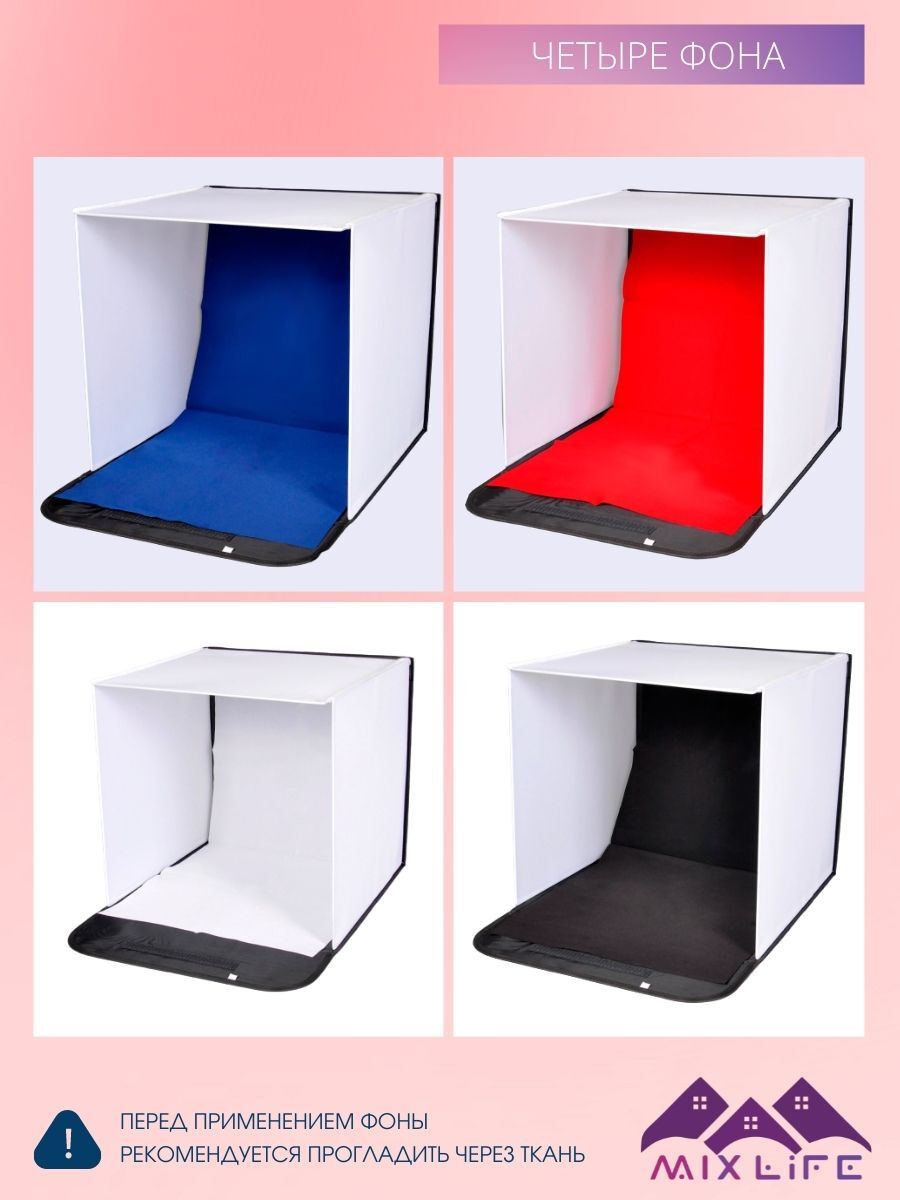 Фотобокс для предметной съемки 40x40 с 4 фонами/ Фотостудия/ Фотофон/ Фон для съёмки/ Лайтбокс