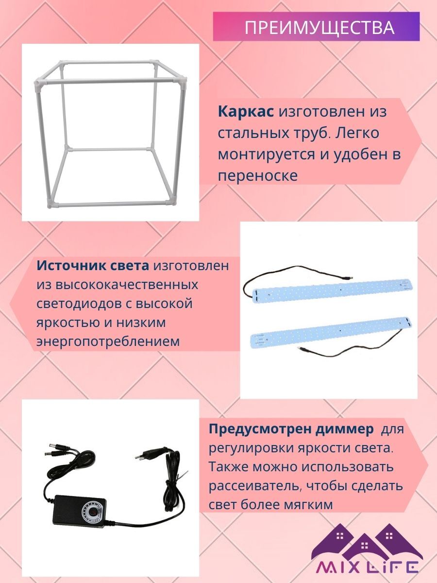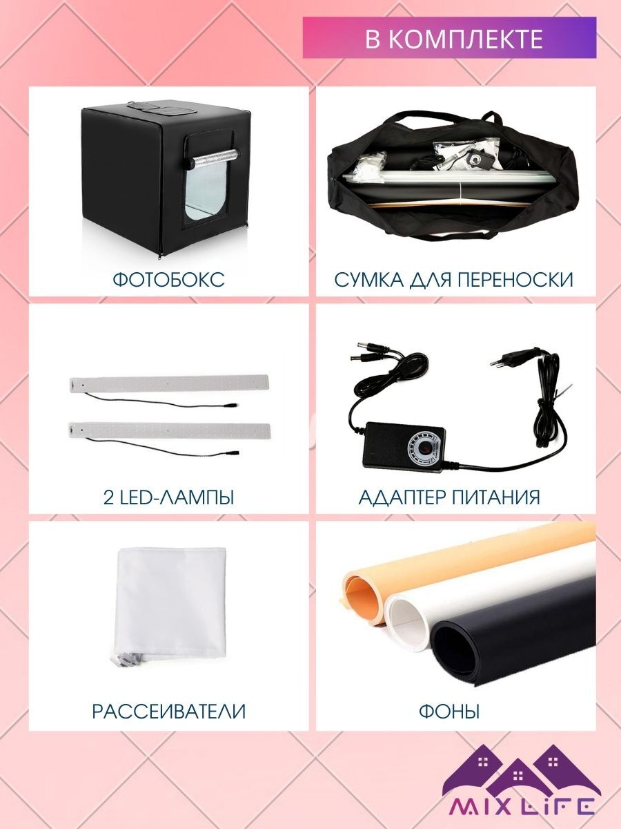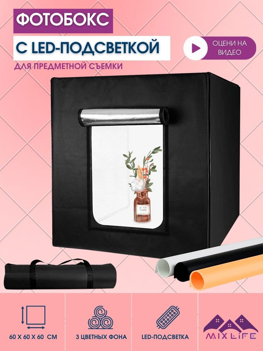 Фотобокс для предметной съемки 60x60 с LED подсветкой/ Фотостудия/ Фотофон/ Фон для съёмки/ Лайтбокс