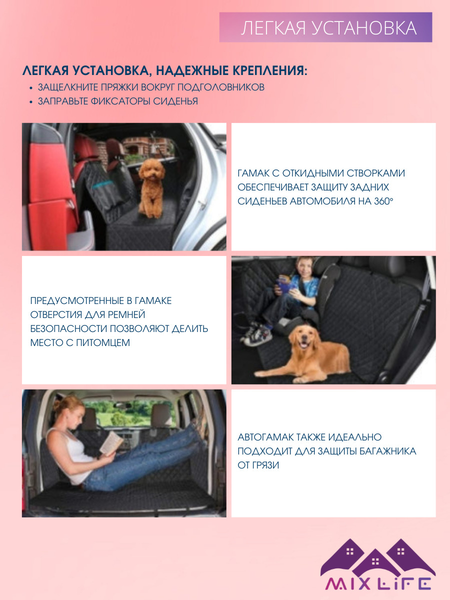 Автомобильный чехол накидка гамак для домашних животных / Автогамак для перевозки собак