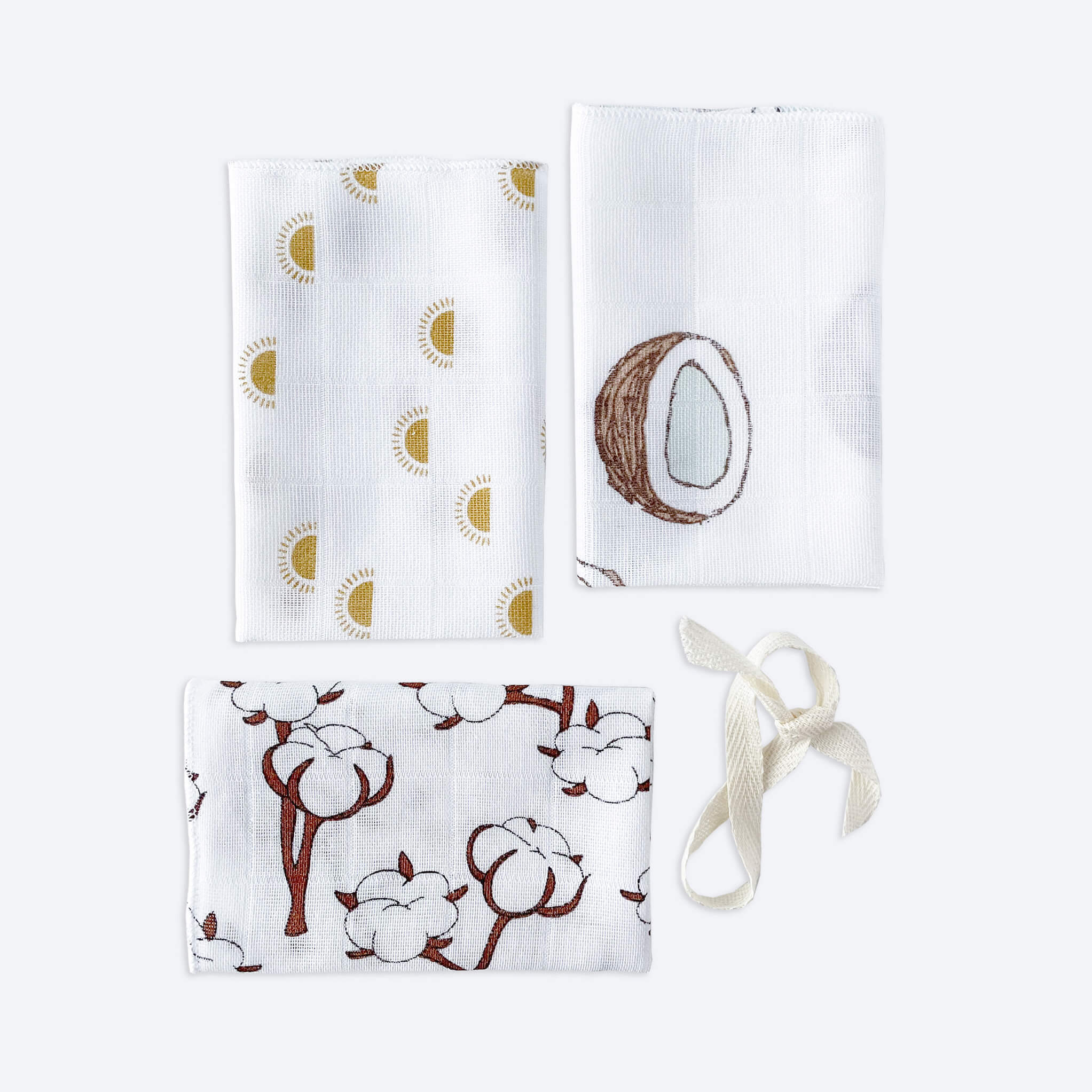 Сет из 3х муслиновых салфеток Mjolk Кокосы/Хлопок/Солнце